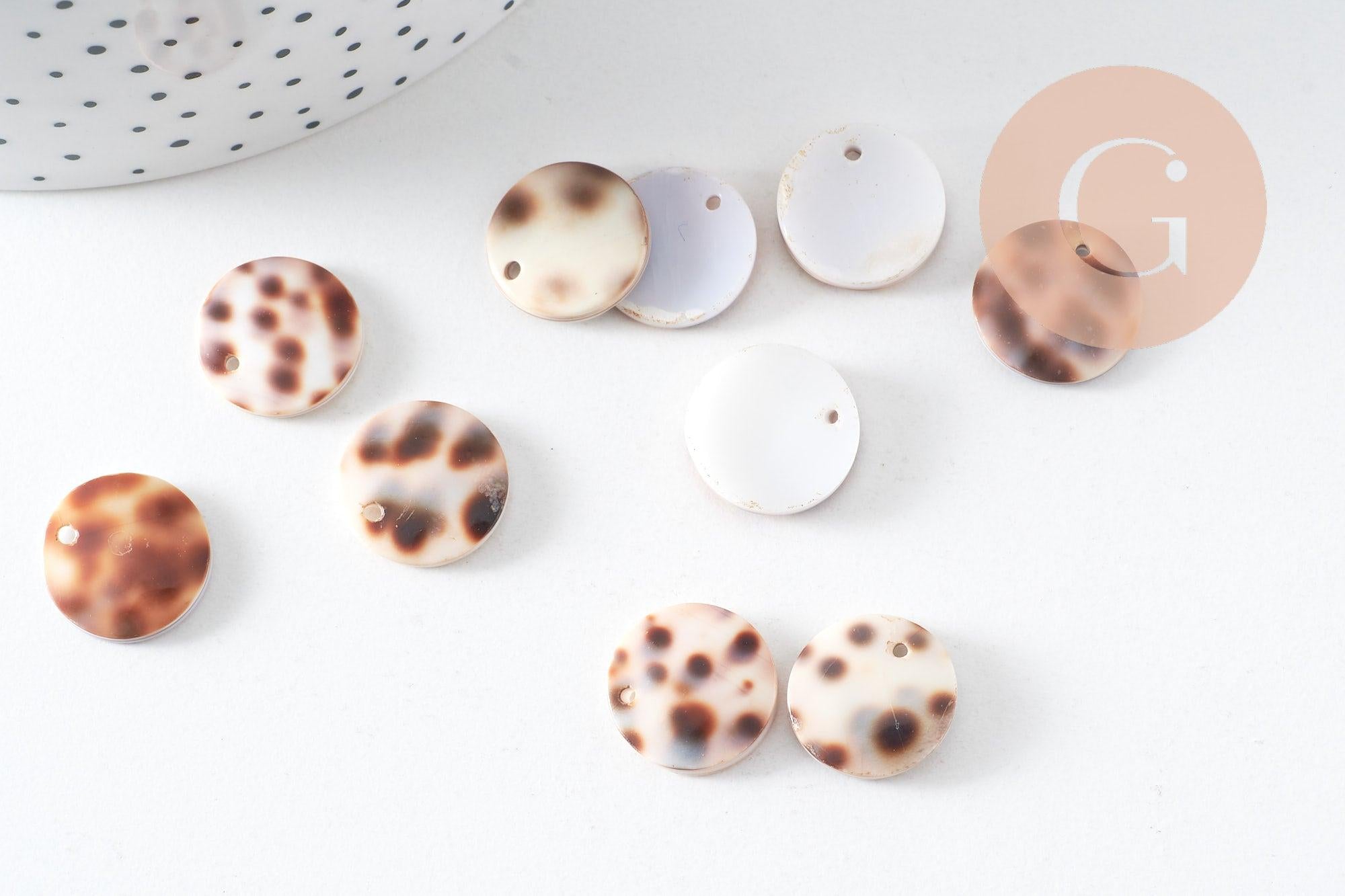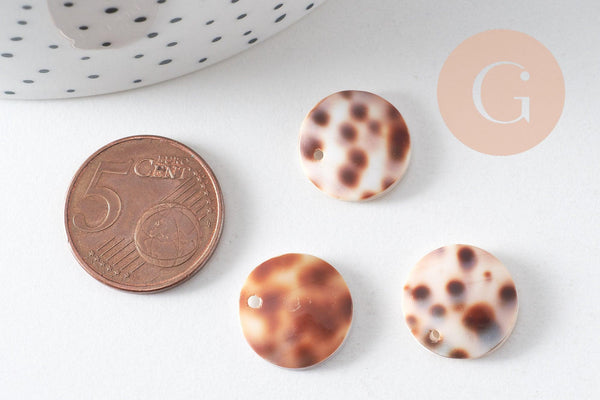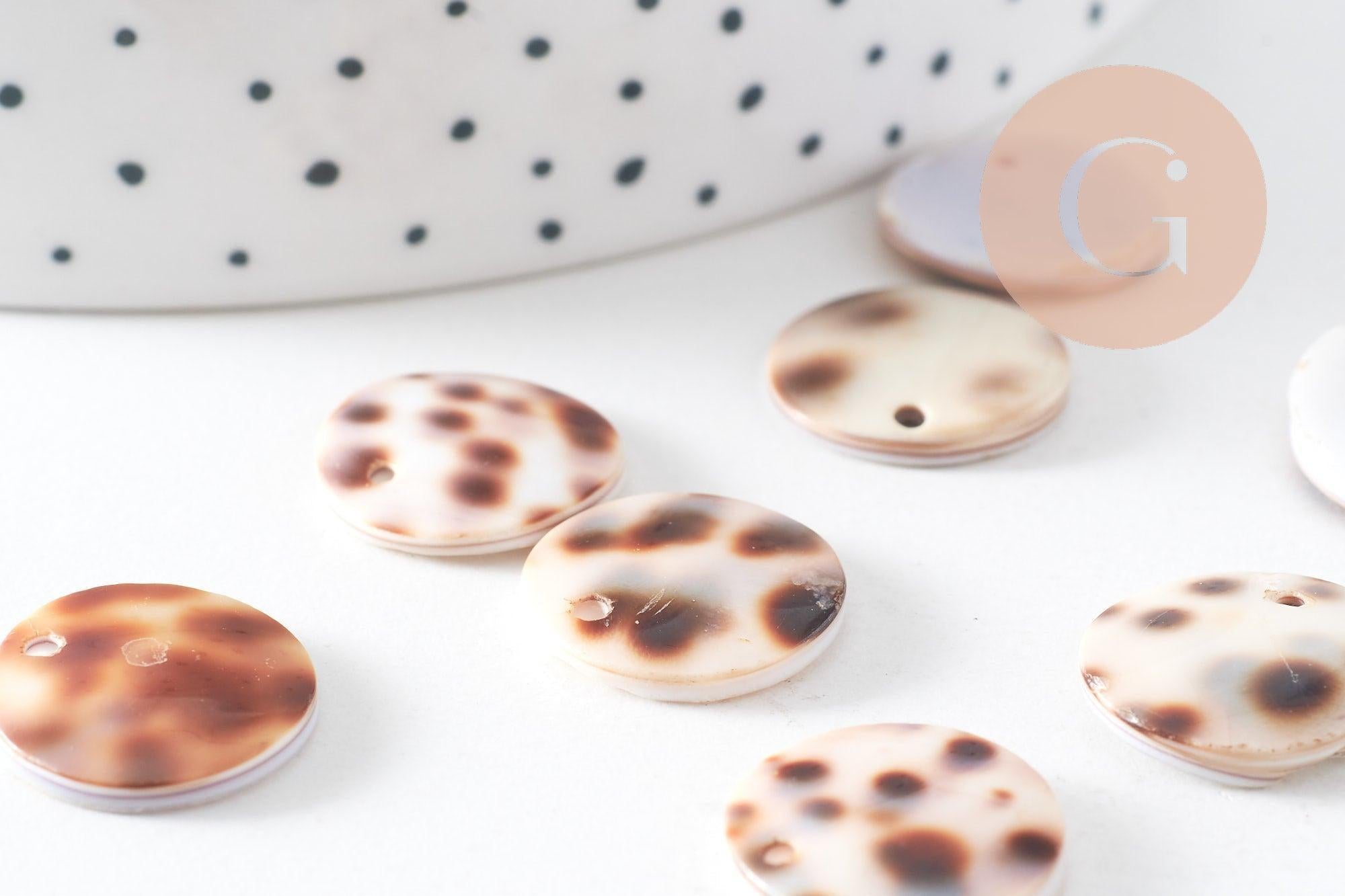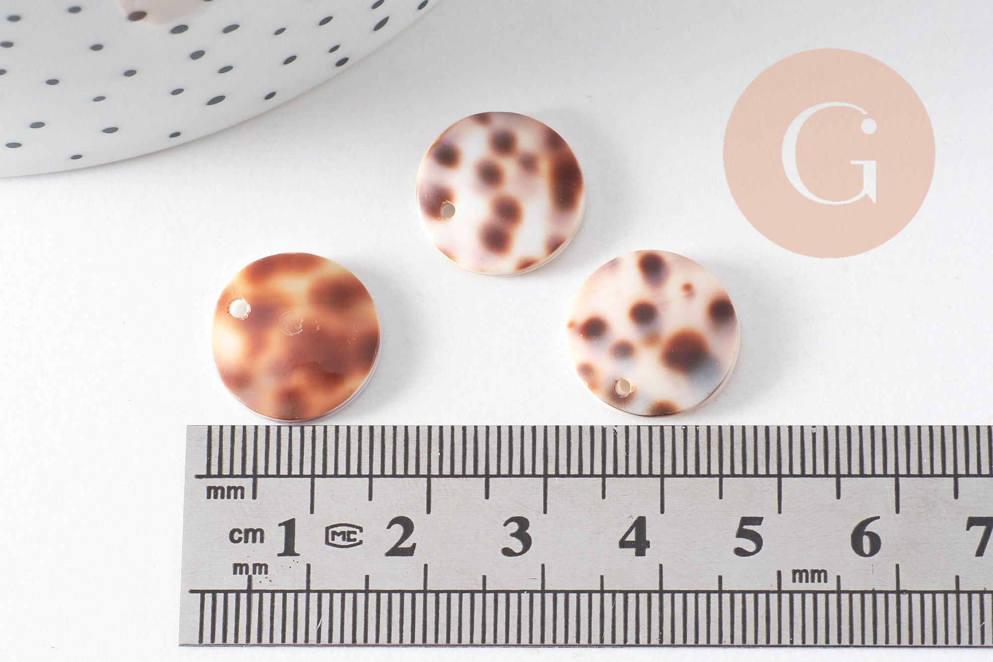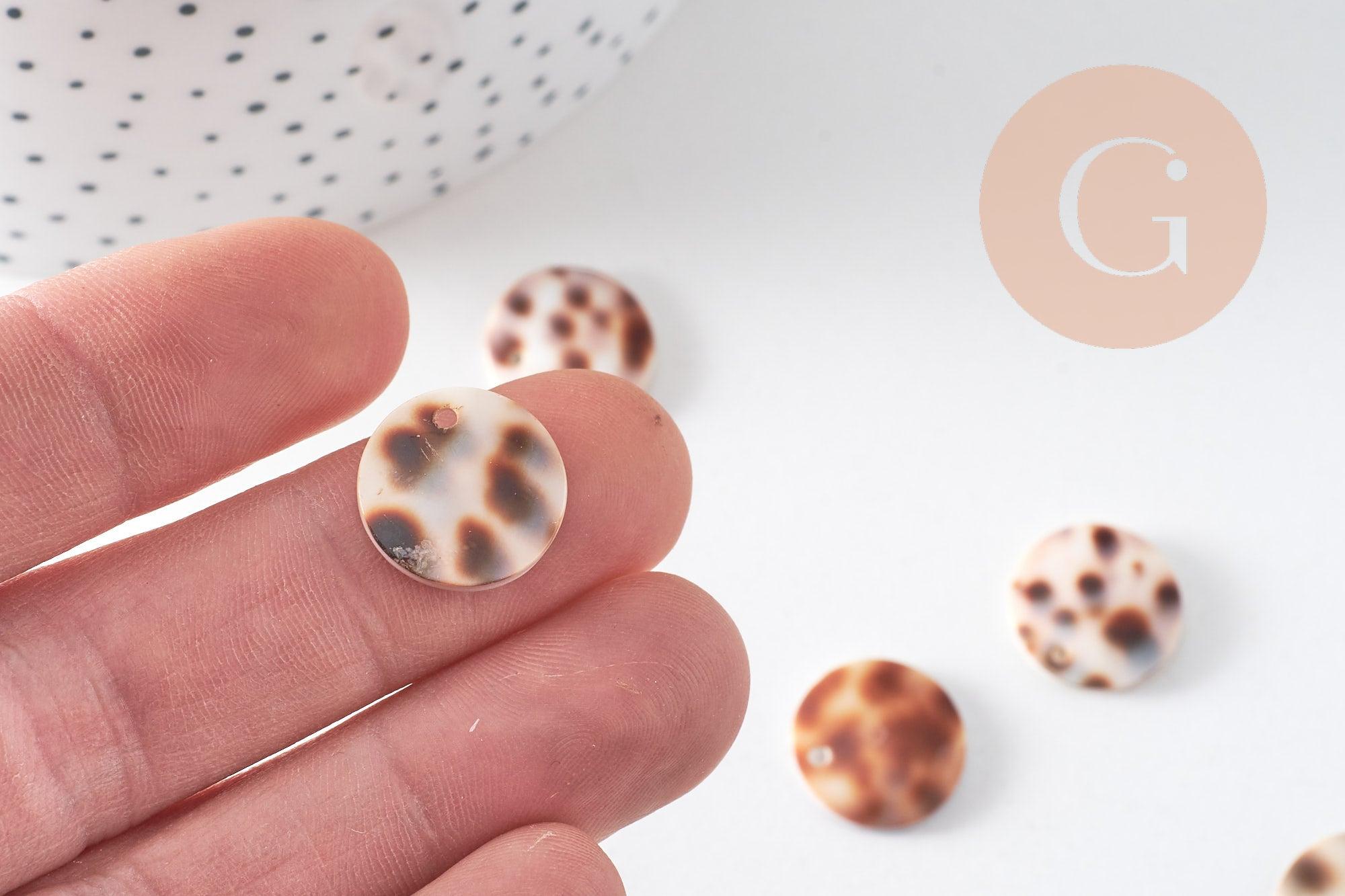Pendentif rond nacre naturelle léopard 15mm, x1 (G4172)