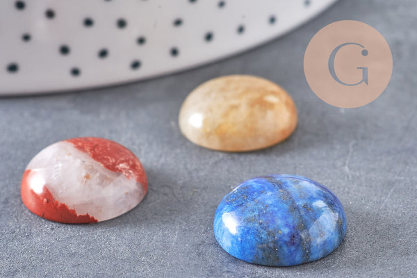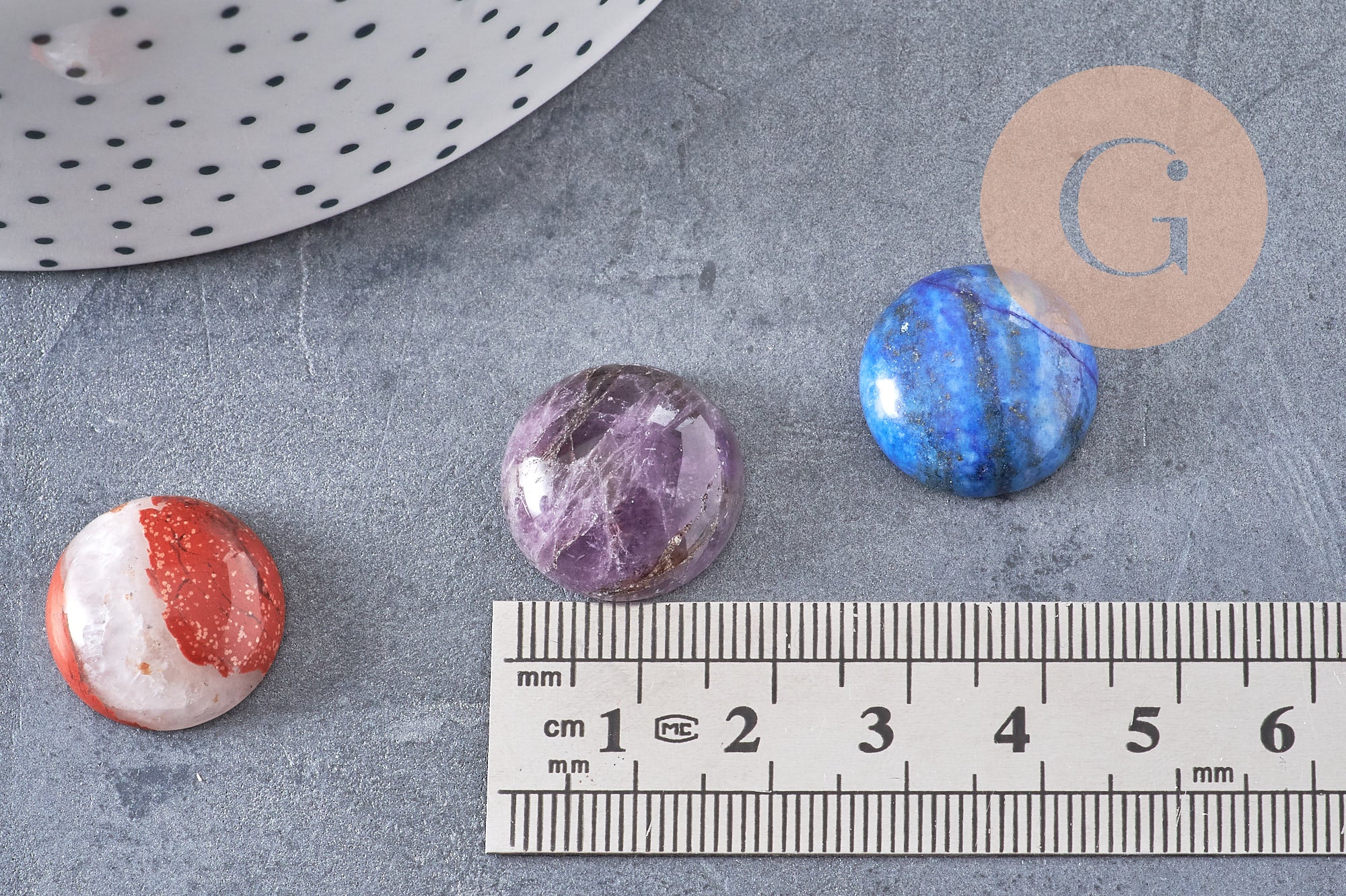 Add a touch of mineral elegance to your creations with this 18mm round dome cabochon made of natural stone . Each piece, carefully polished, reveals the unique nuances of various stones such as amethyst, lapis lazuli, carnelian or even tiger's eye.