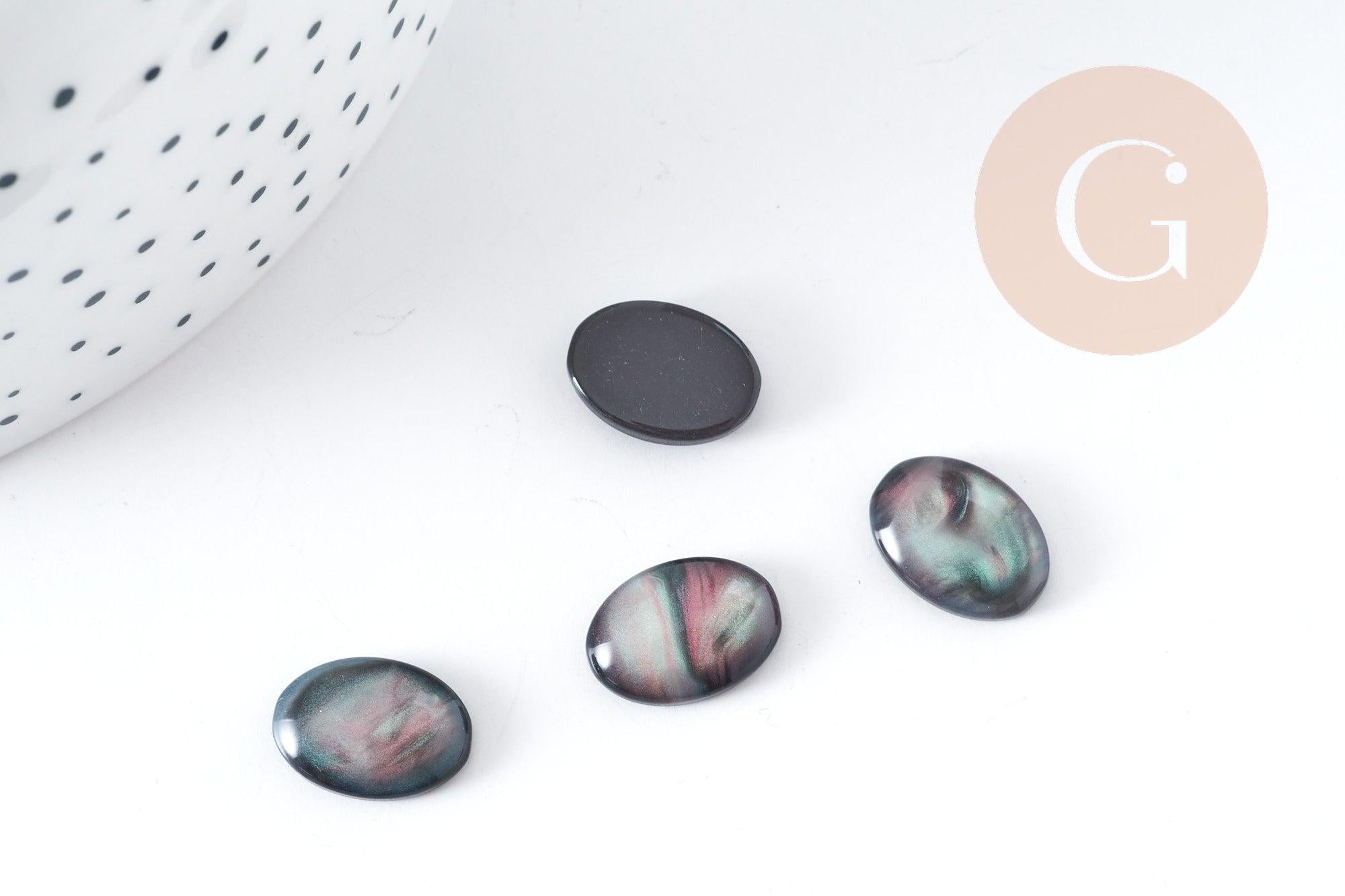 Cabochon ovale résine noire imitation nacre 14x10mm, x1 (G9101)