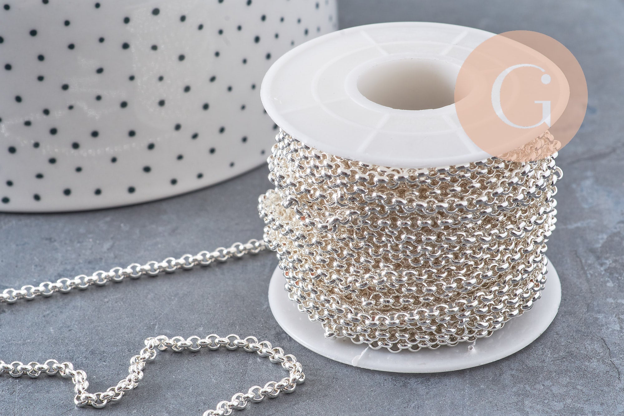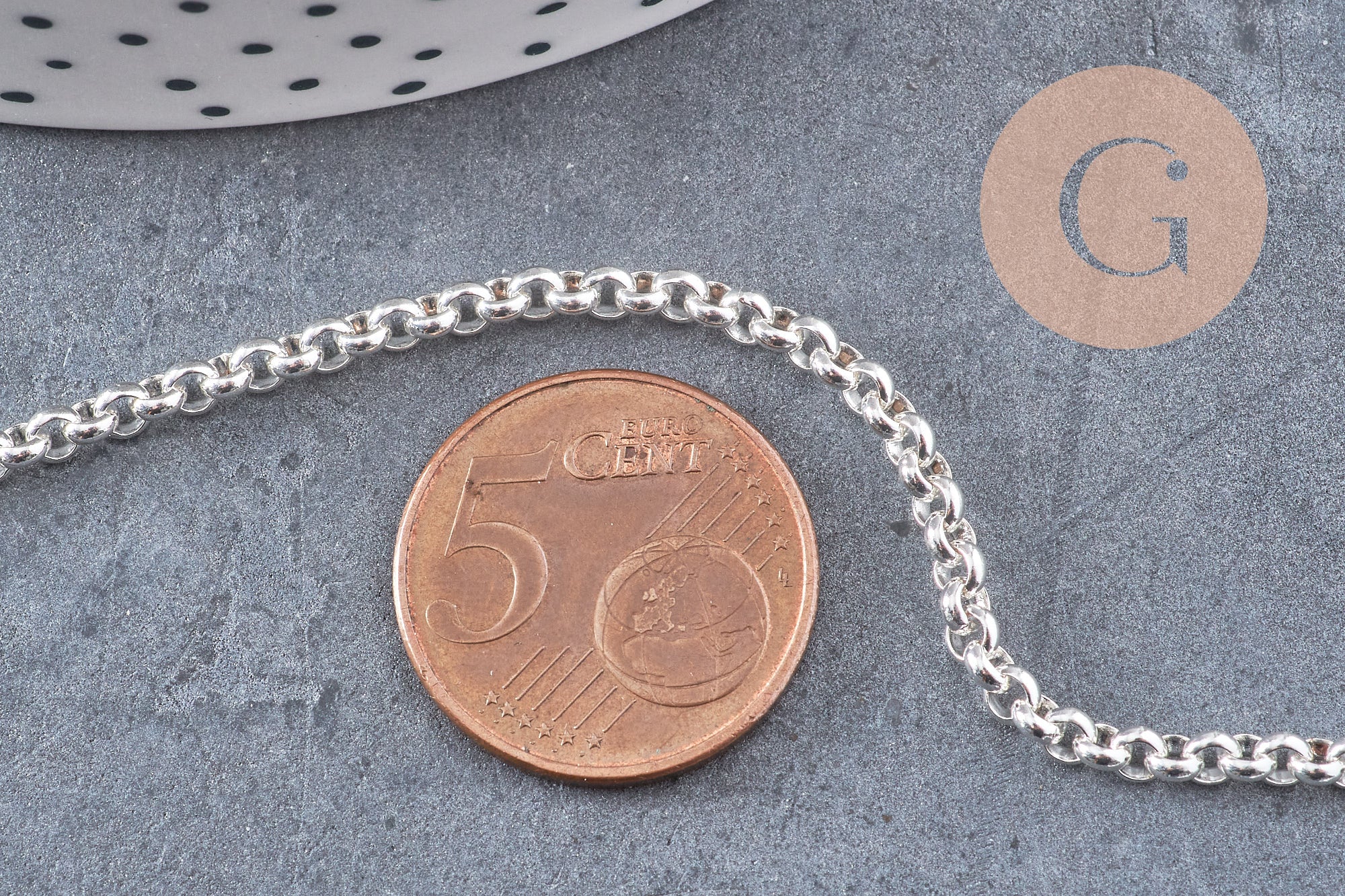 Add a touch of timeless elegance to your creations with this silver-plated 304 stainless steel rolo chain . Its round, regular links, also known as belcher links , offer a balanced and sturdy structure, perfect for all your DIY jewelry projects.