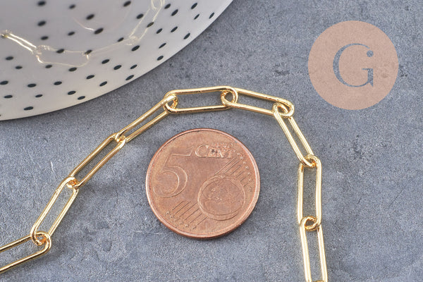 18k gold-plated brass chain, rectangular mesh, necklace chain, jewelry creation, wide chain, 14x4.5mm, sold by the meter