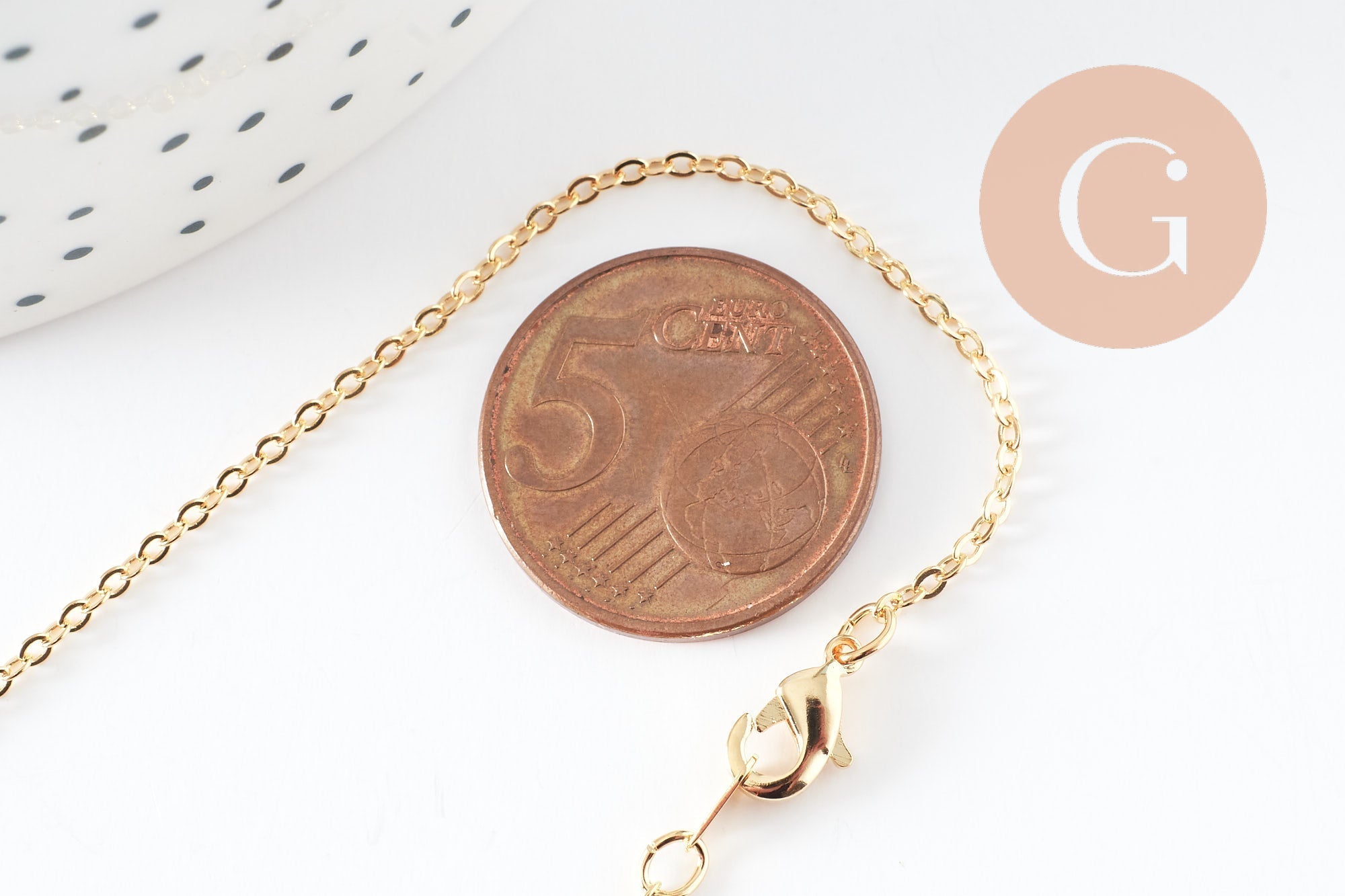 Discover the elegance and quality of our 16K gold-plated copper cable chain. With a thickness of 1.8 mm and a length of 45 cm, this complete chain with clasp is the perfect accessory for your refined jewelry creations.