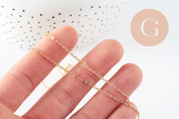 Chaine avec fermoir forçat cuivre dorée 16K 0.5microns collier 1.8mm/45cm, x1 (G5341)
