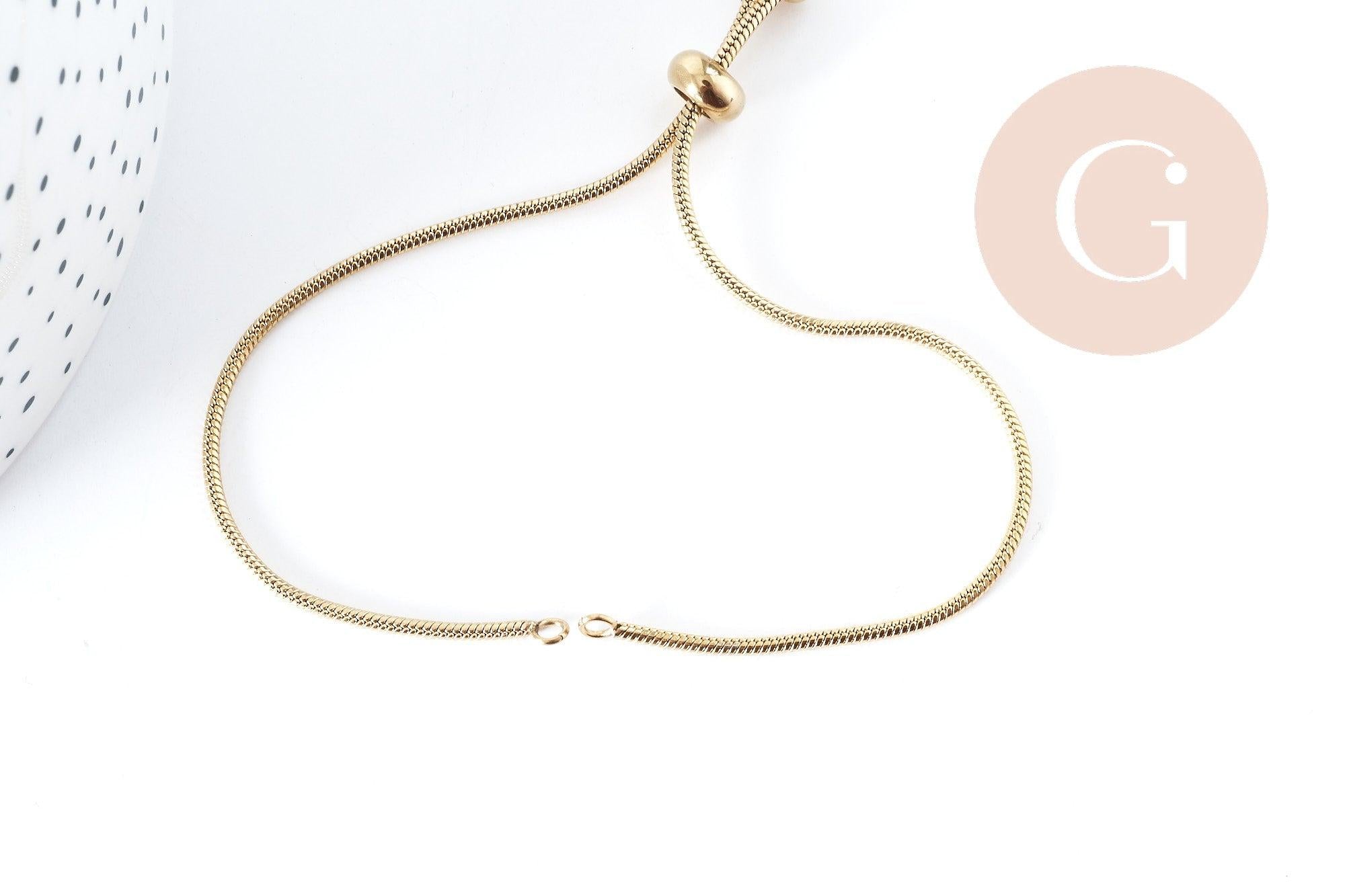 Adjustable bracelet base in 304 gold-plated stainless steel, 14k snake chain, 23cm, x1 (G5688)