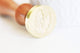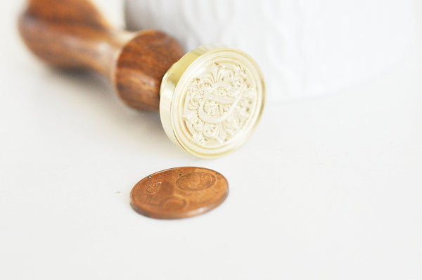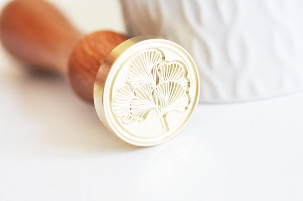 To make your invitations and your own seals, adopt the melting wax technique with this metal and wood seal representing a gingko leaf