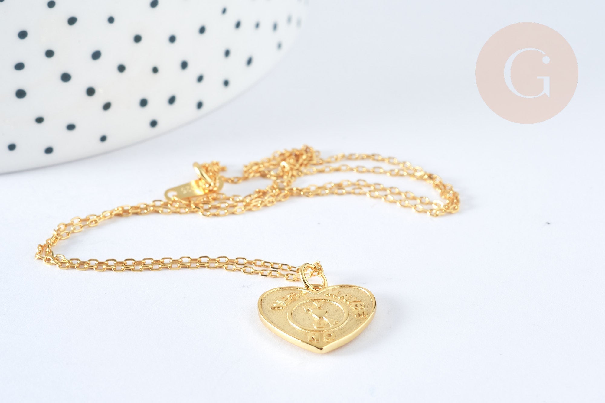 A solid 925 silver cable chain necklace covered with a thin layer of 24K gold, featuring a delicate medal representing a heart with a love gauge. A nice gift to give (to yourself).