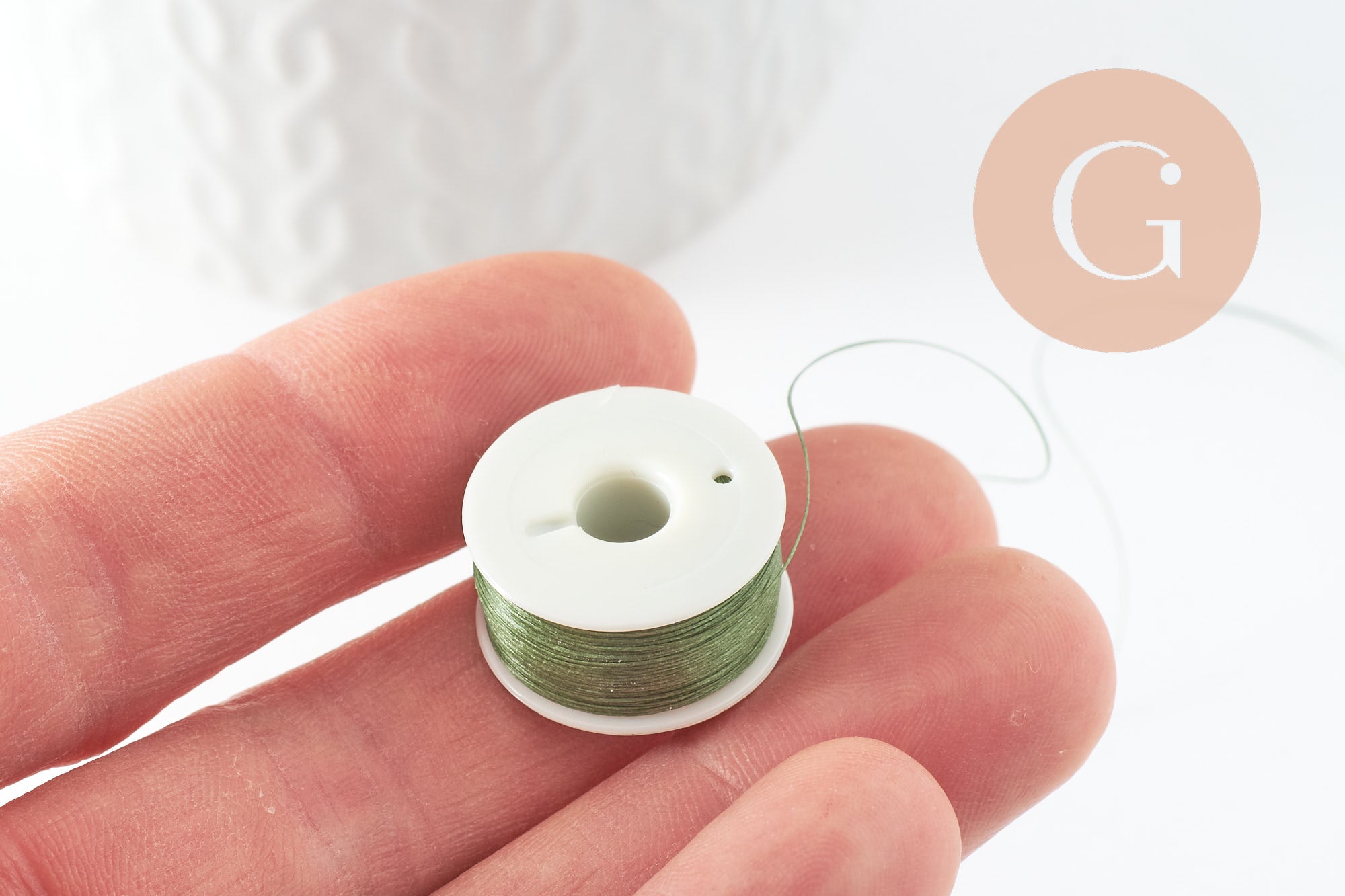 A fine and strong weaving thread for all your Miyuki Delica bead or seed bead creations. This khaki green nylon thread offers excellent strength and discreetness in your woven or embroidered jewelry projects.