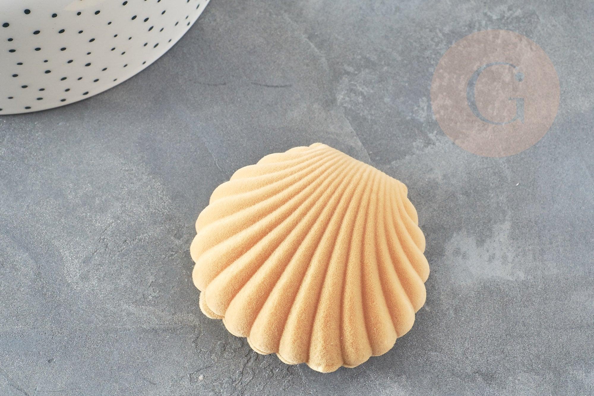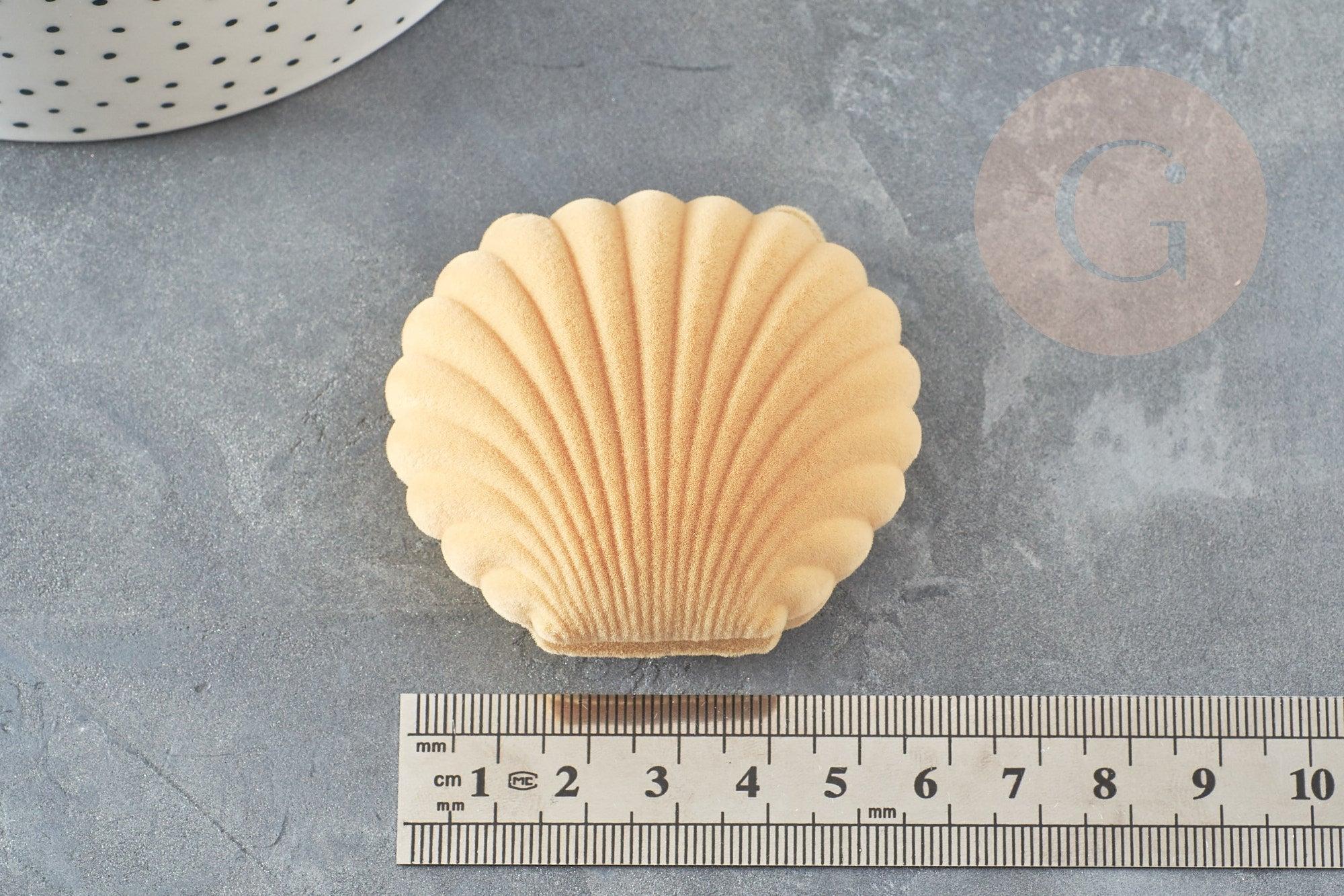 Ecrin bijou coquillage Velours jaune moutarde 3.5x3.8cm, x1 (G5097)