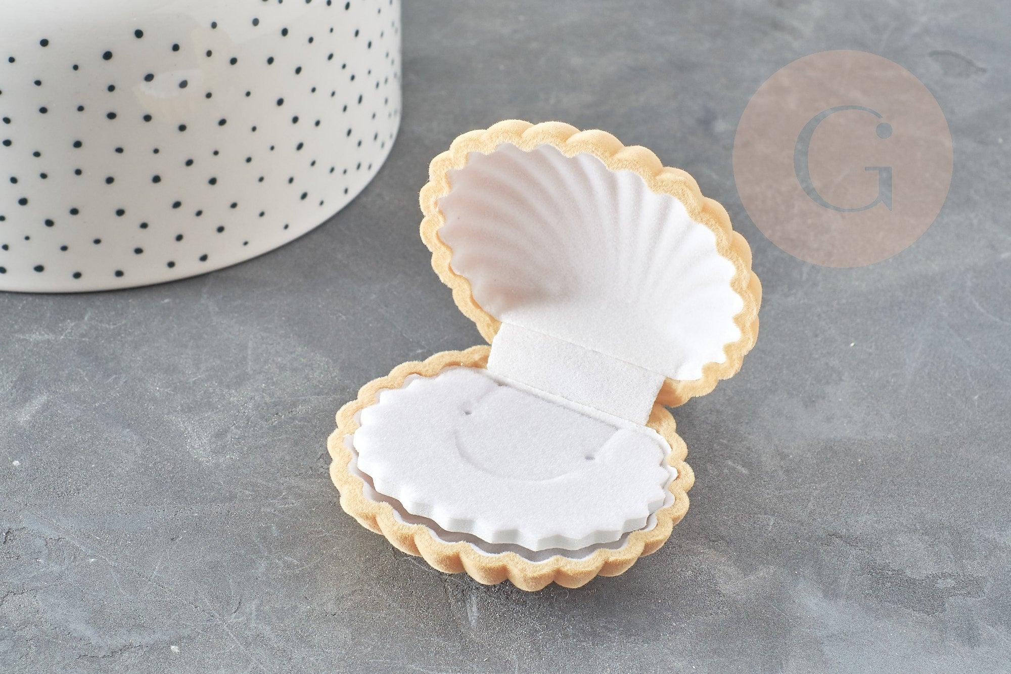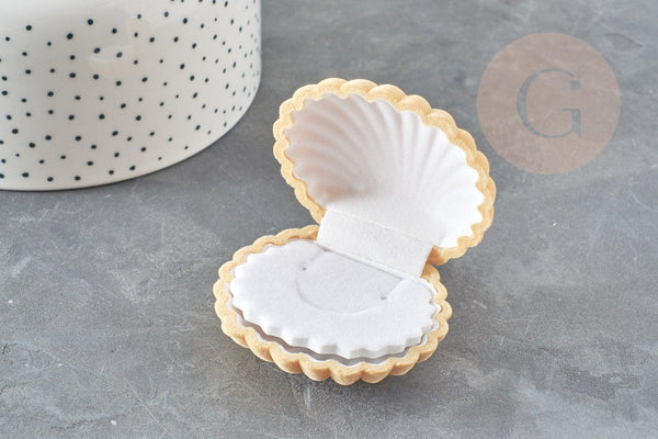 Fall for this shell box in mustard yellow velvet with white interior, to offer your jewelry in beautiful packaging.