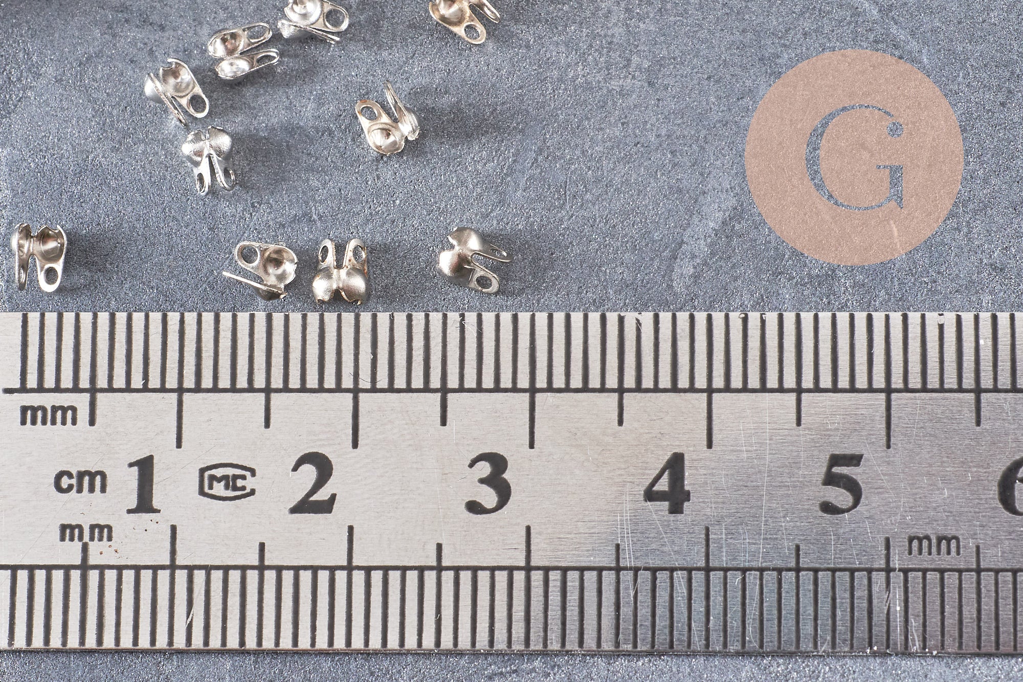 A one gram pack of nickel/platinum colored metal bow covers to perfect your creations and improve the finishes.