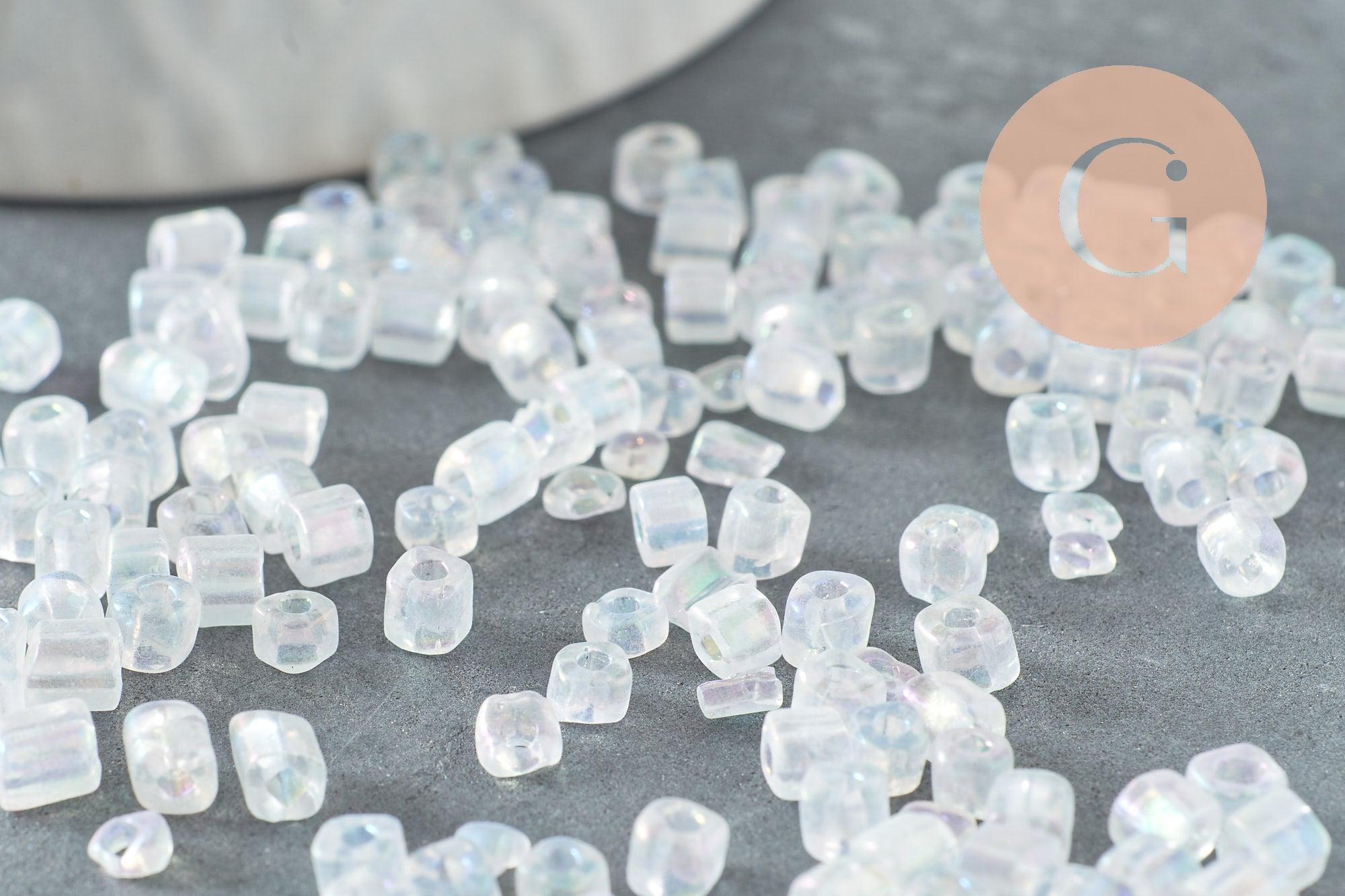 Grosses perles rocaille transparentes irisées 4mm, x 20Gr (G1392)