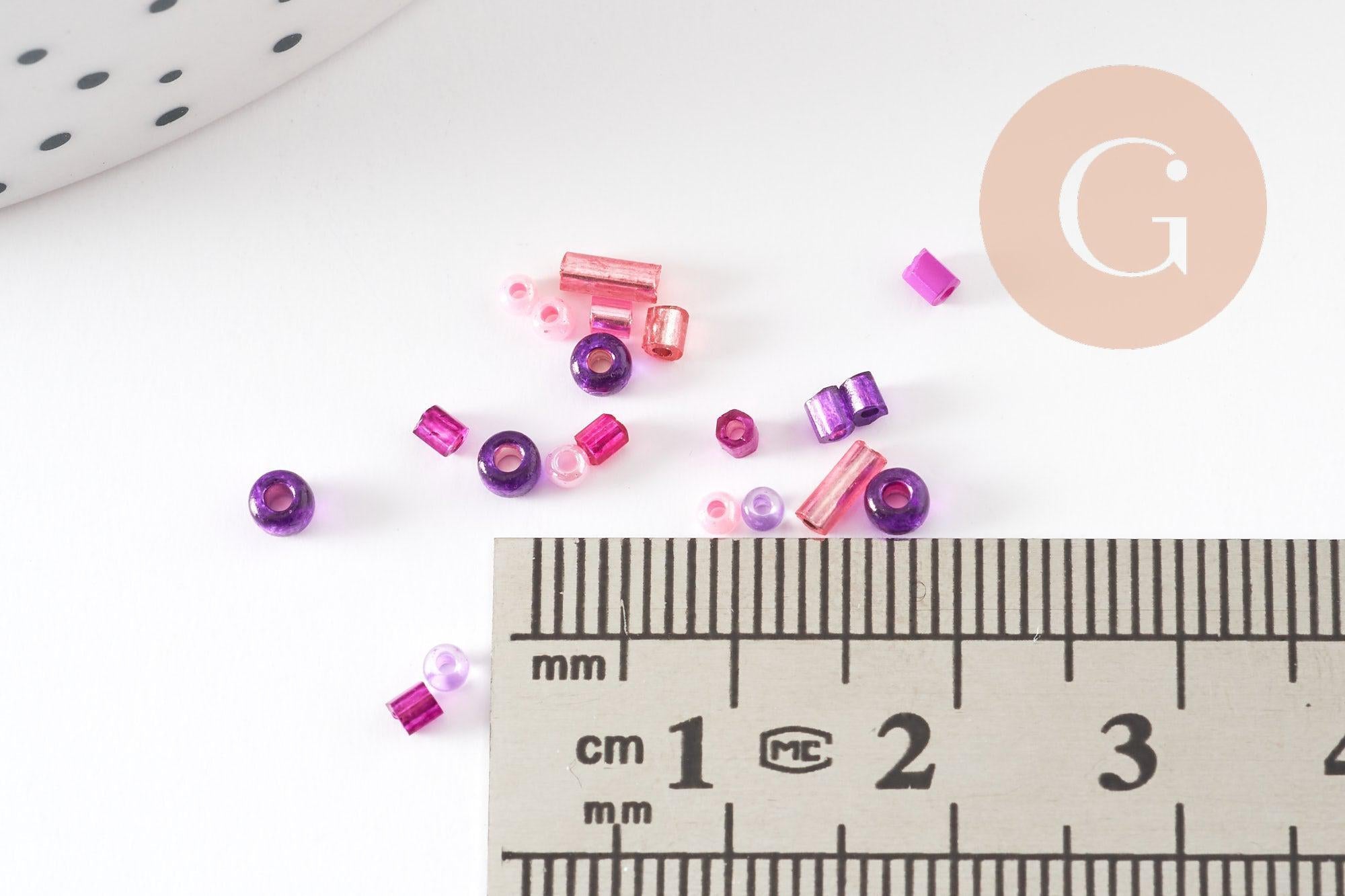 Mélange perles rocaille camaïeu rose violet , perles pour création bijoux x 10gr (G9510)