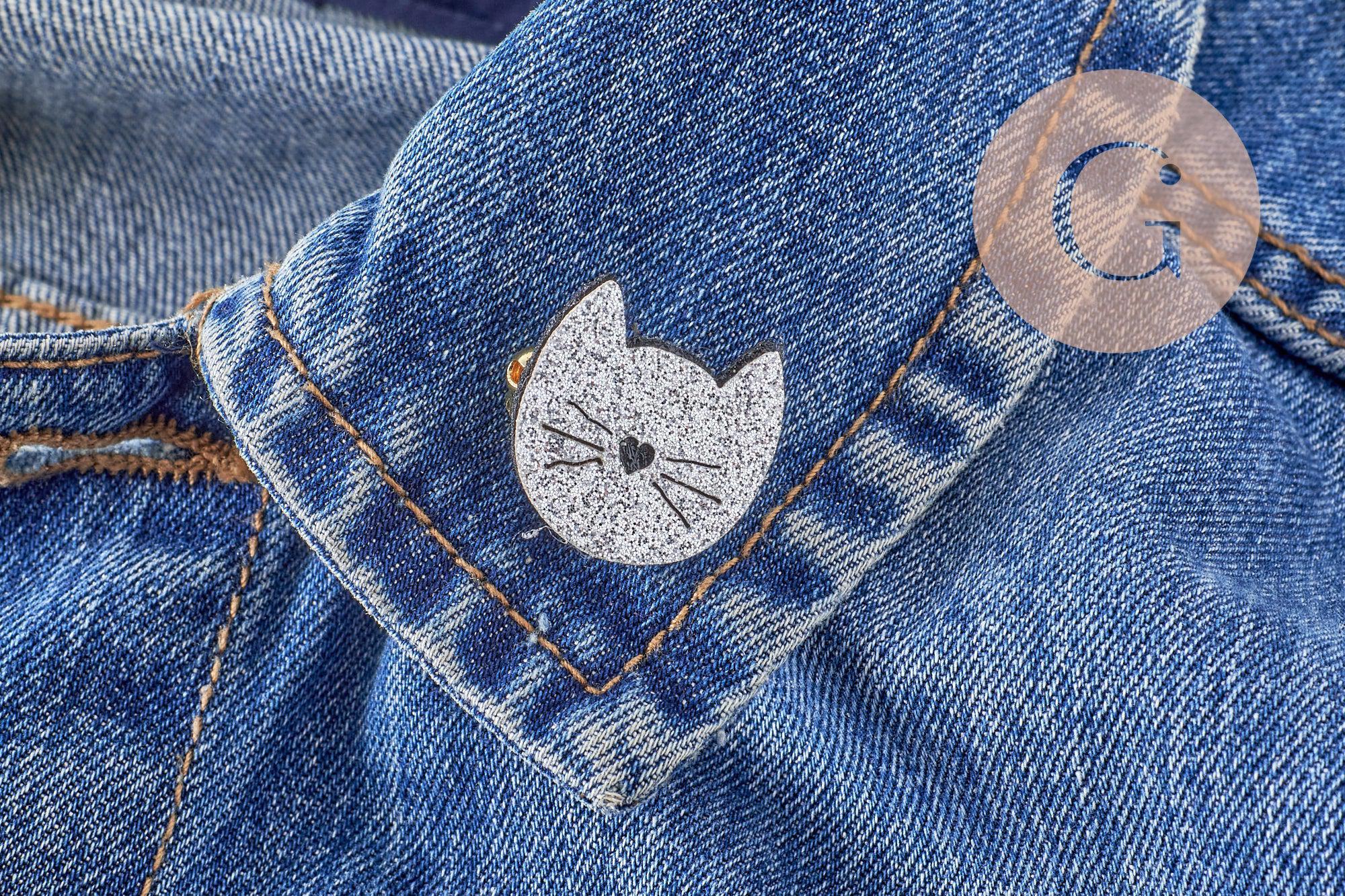 Add a playful and elegant touch to your creations with this cute cat brooch with a delicate design. With its charming mustache , heart-shaped nose and glittery gray finish, this brooch is the perfect accessory to personalize your clothes, bags or DIY accessories.