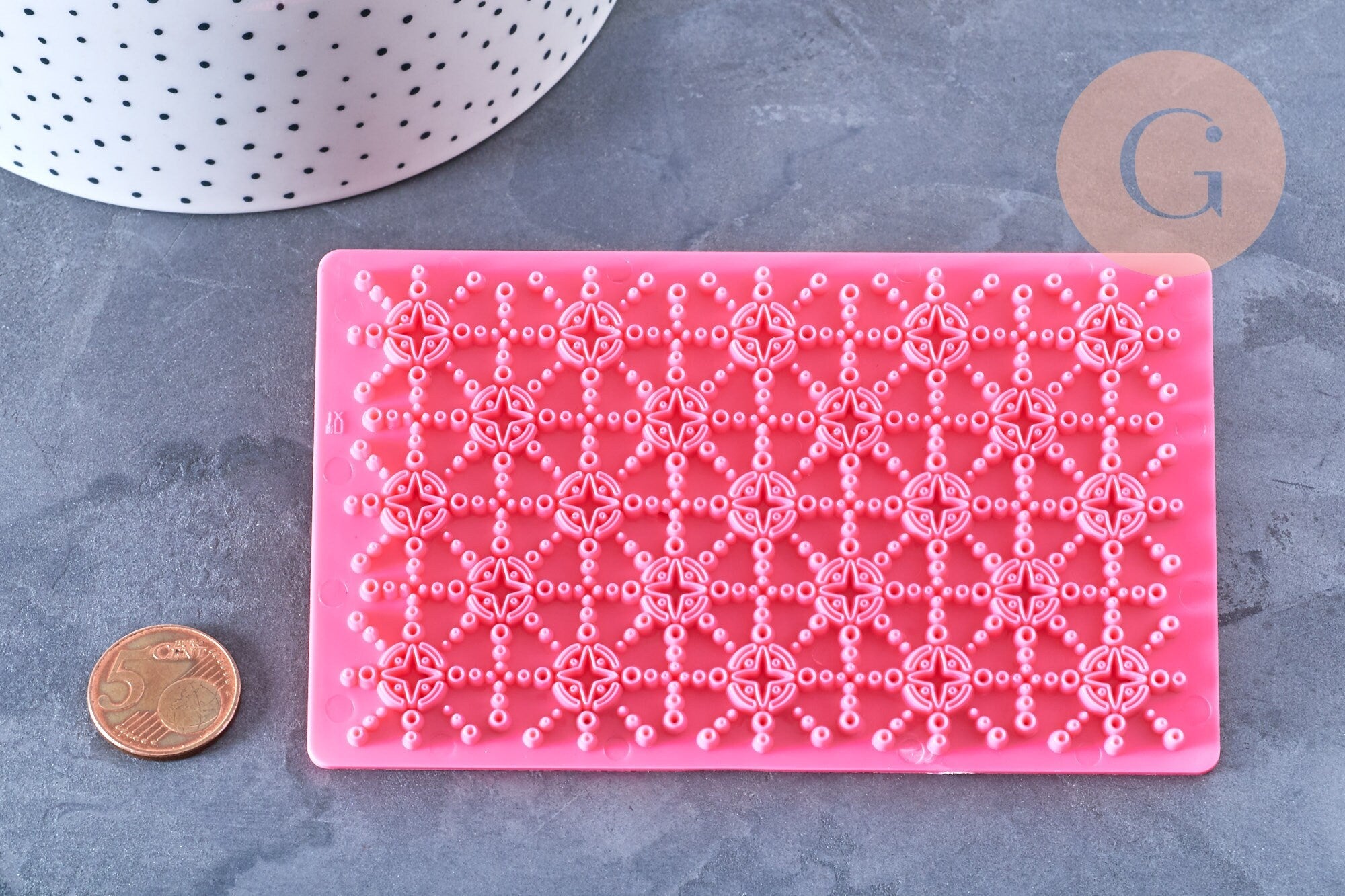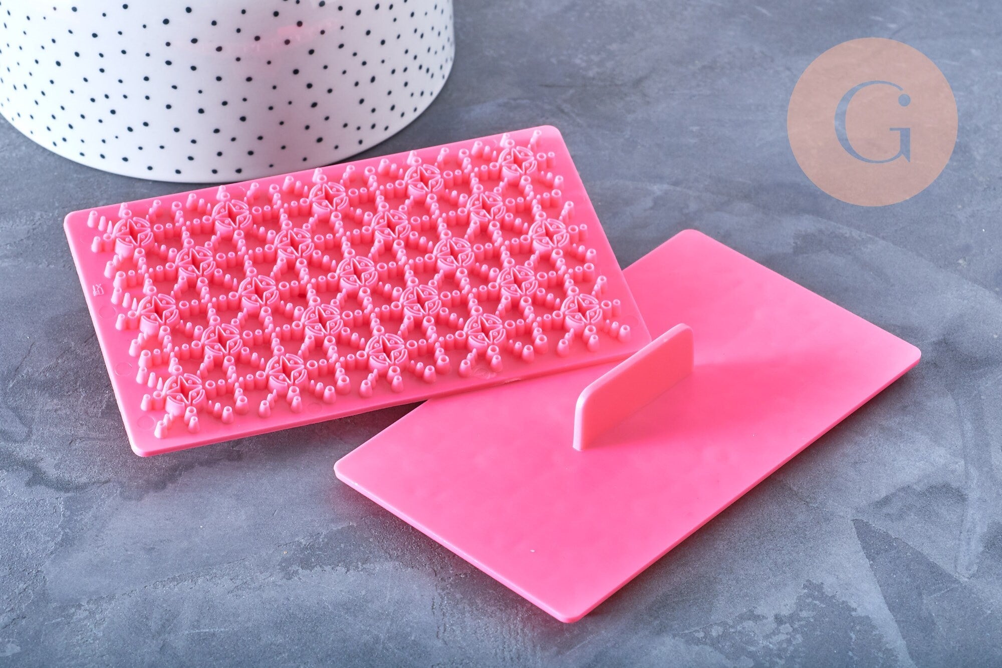 Characteristics of the pink silicone embosser biscuit stamp (Reference G4179):