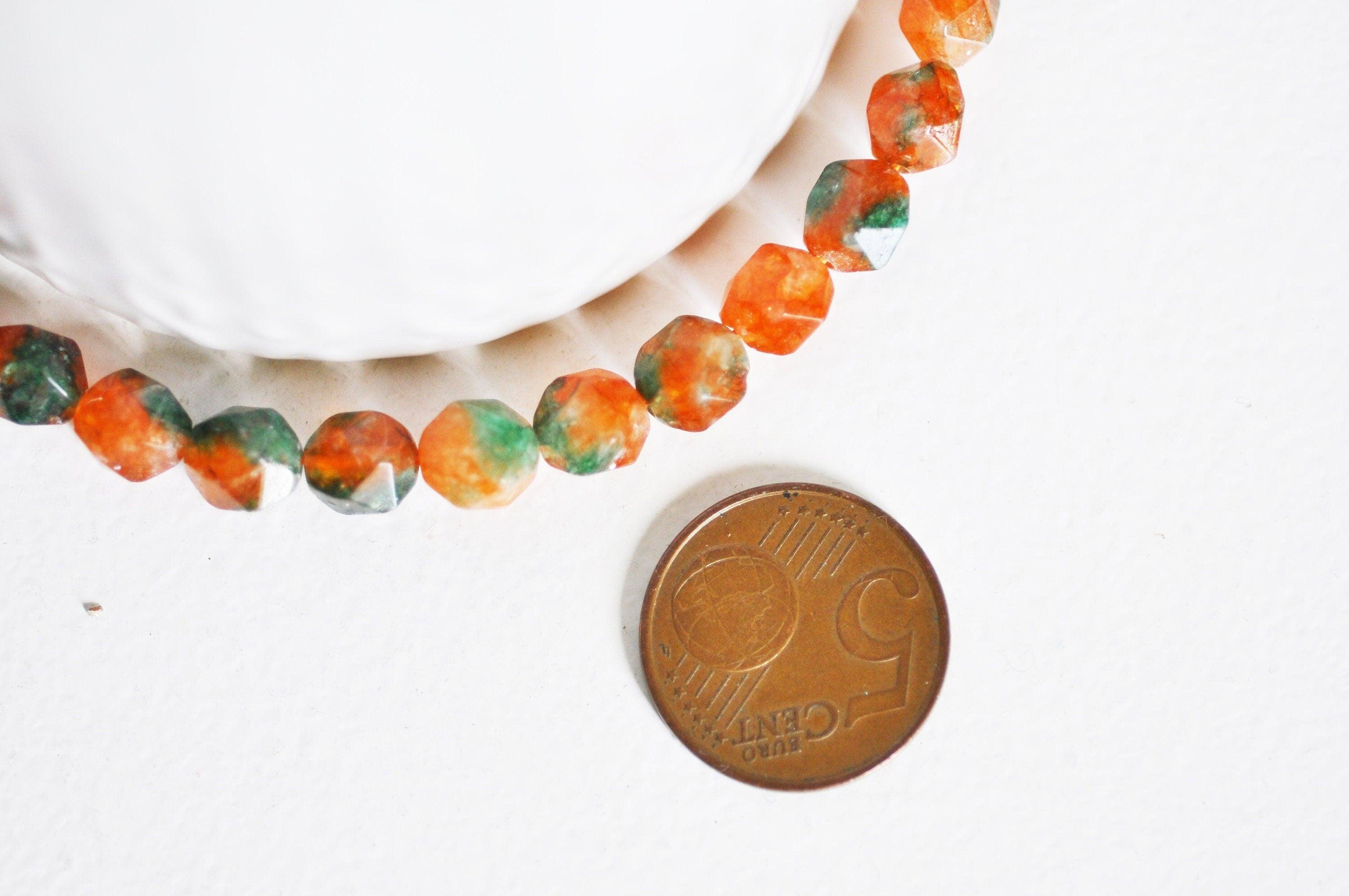 Faceted orange jade bead, jade bead, natural stone, natural jade, stone bead, faceted bead, jade, 8mm, strand 45 beads A strand of approximately 45 faceted tinted jade beads. Dimensions 8x8x8mm Hole: 1mm Other jade, agate and natural stone beads are...