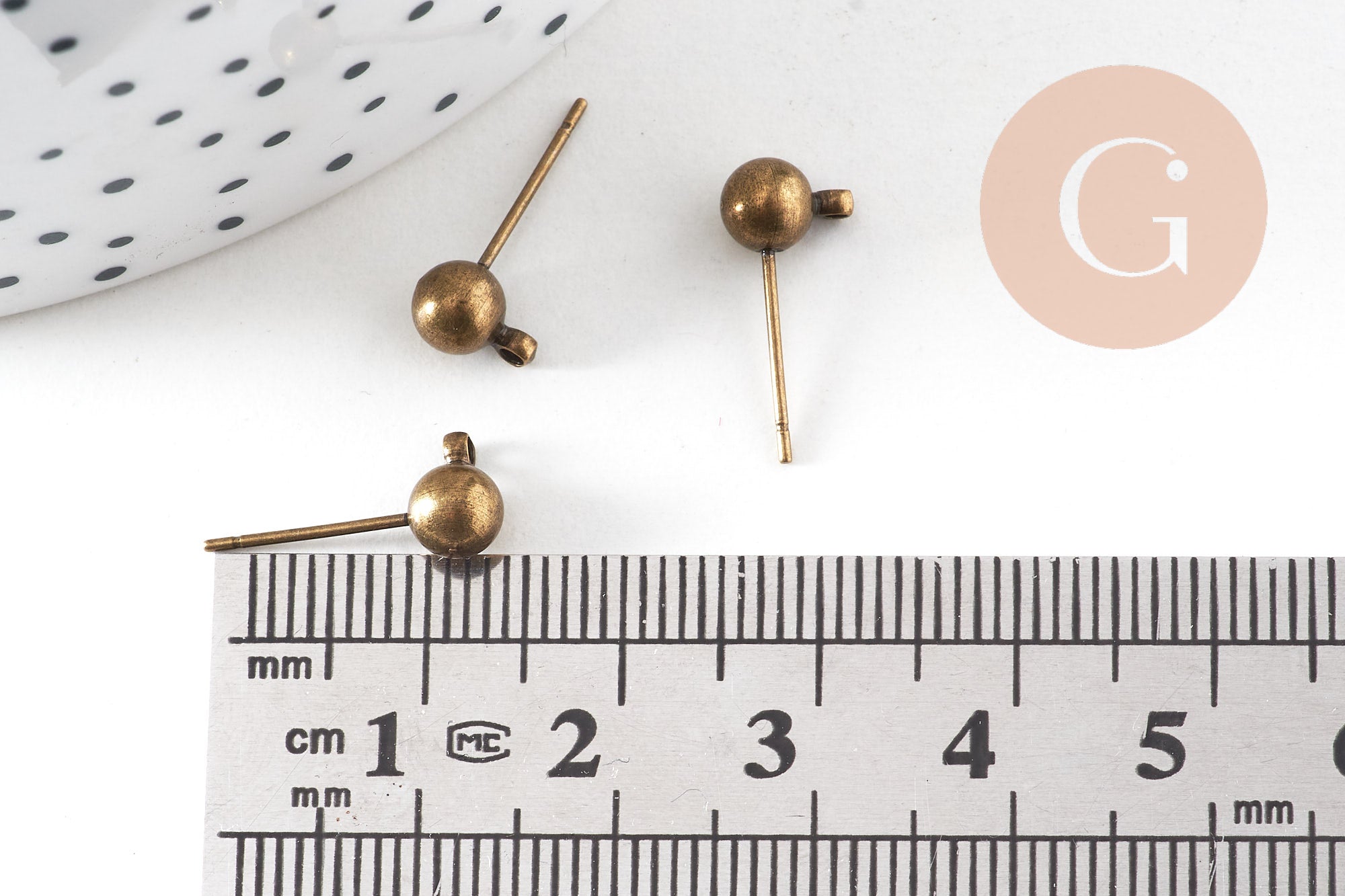 bronze ball ear studs with ring, creative supplies, earrings, jewelry creation, pierced ear, diameter 5mm, set of 10 To make your own earrings, here is a set of 10 bronze metal ear studs, with a small ring to make your...