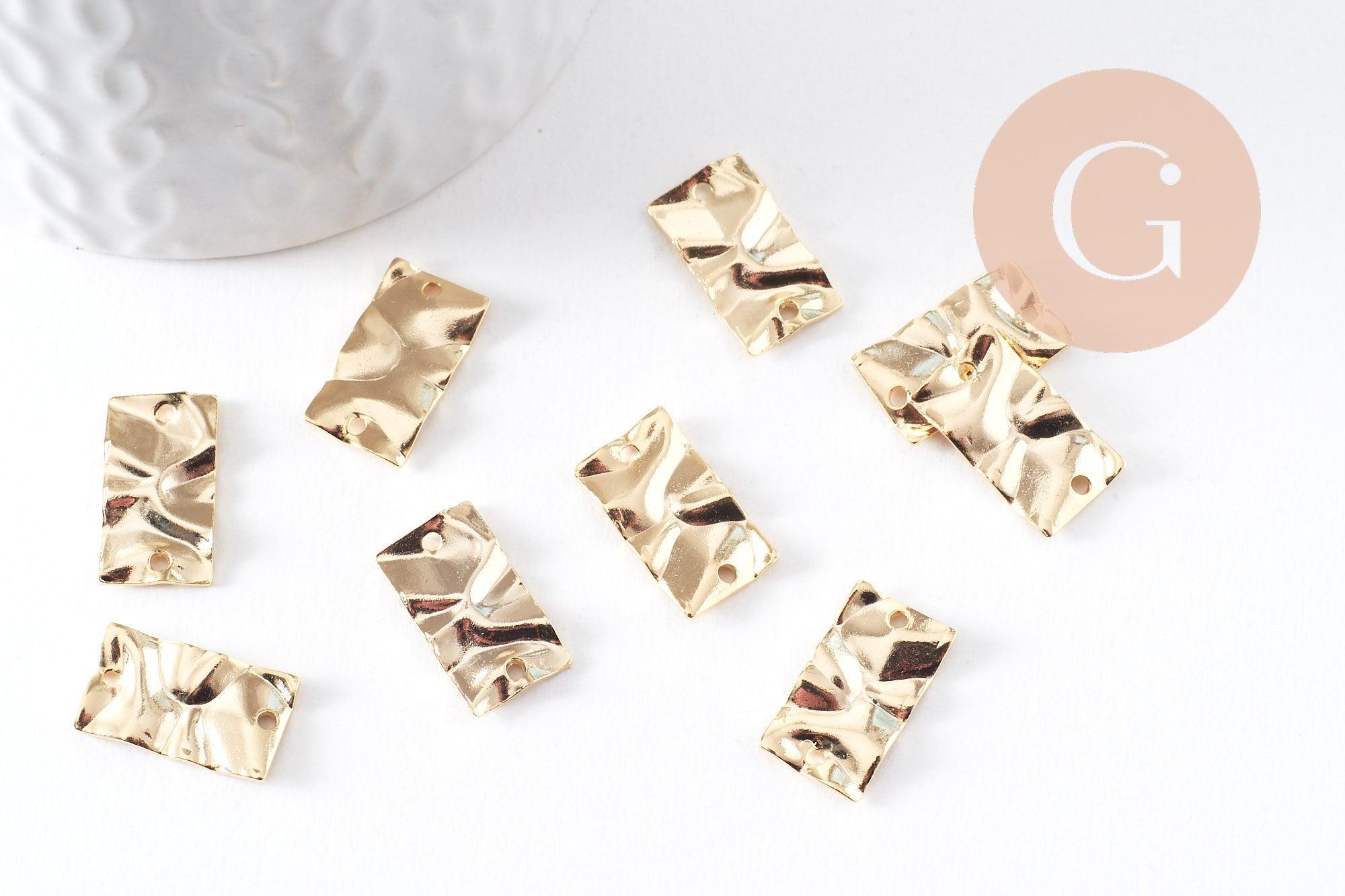 Add a touch of texture and modernity to your creations with these 24K gold-plated brass crumpled rectangular connector pendants .