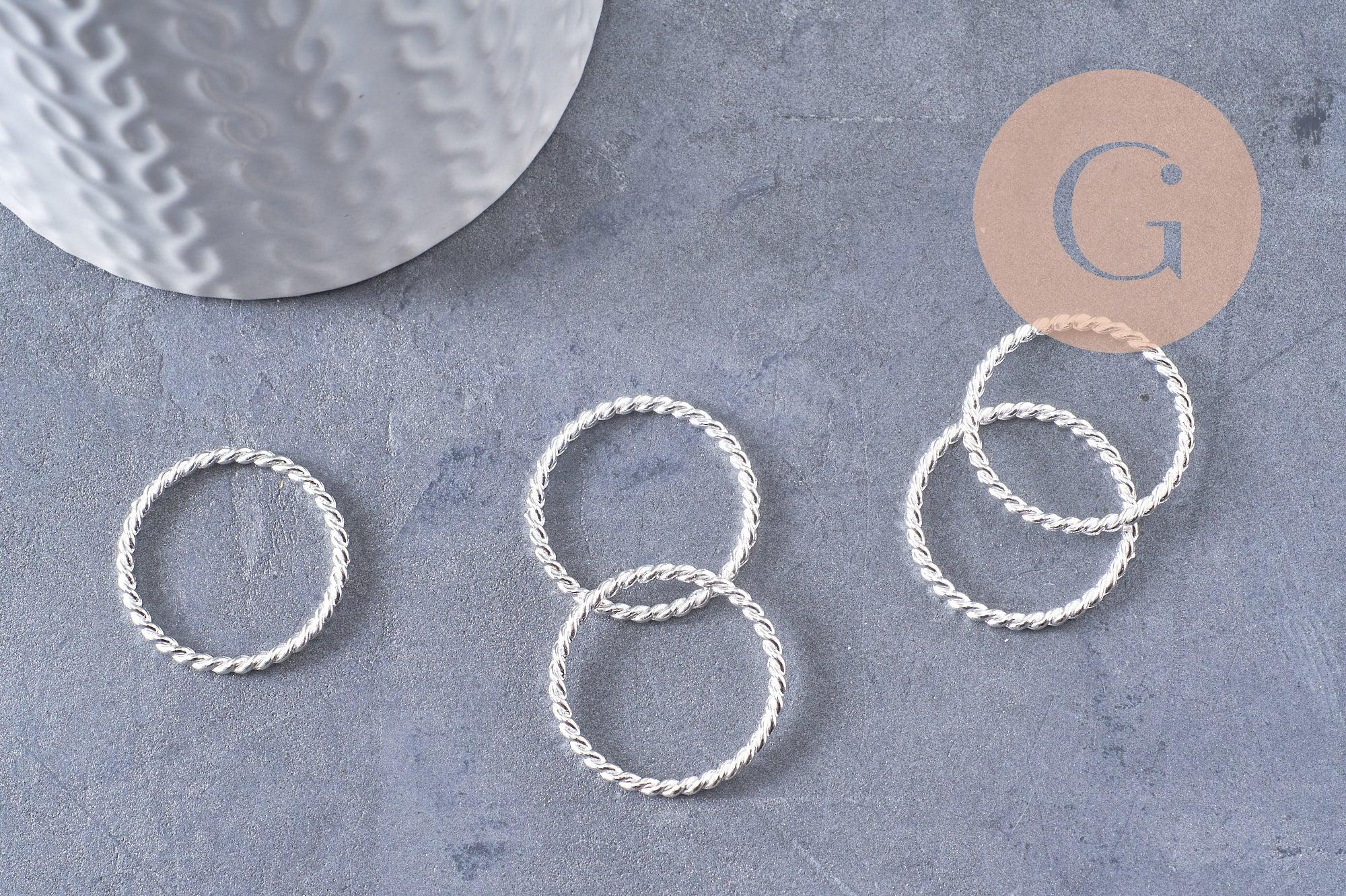 Pendentif connecteur rond torsadé zamac argenté 25mm, x20 (G10390)