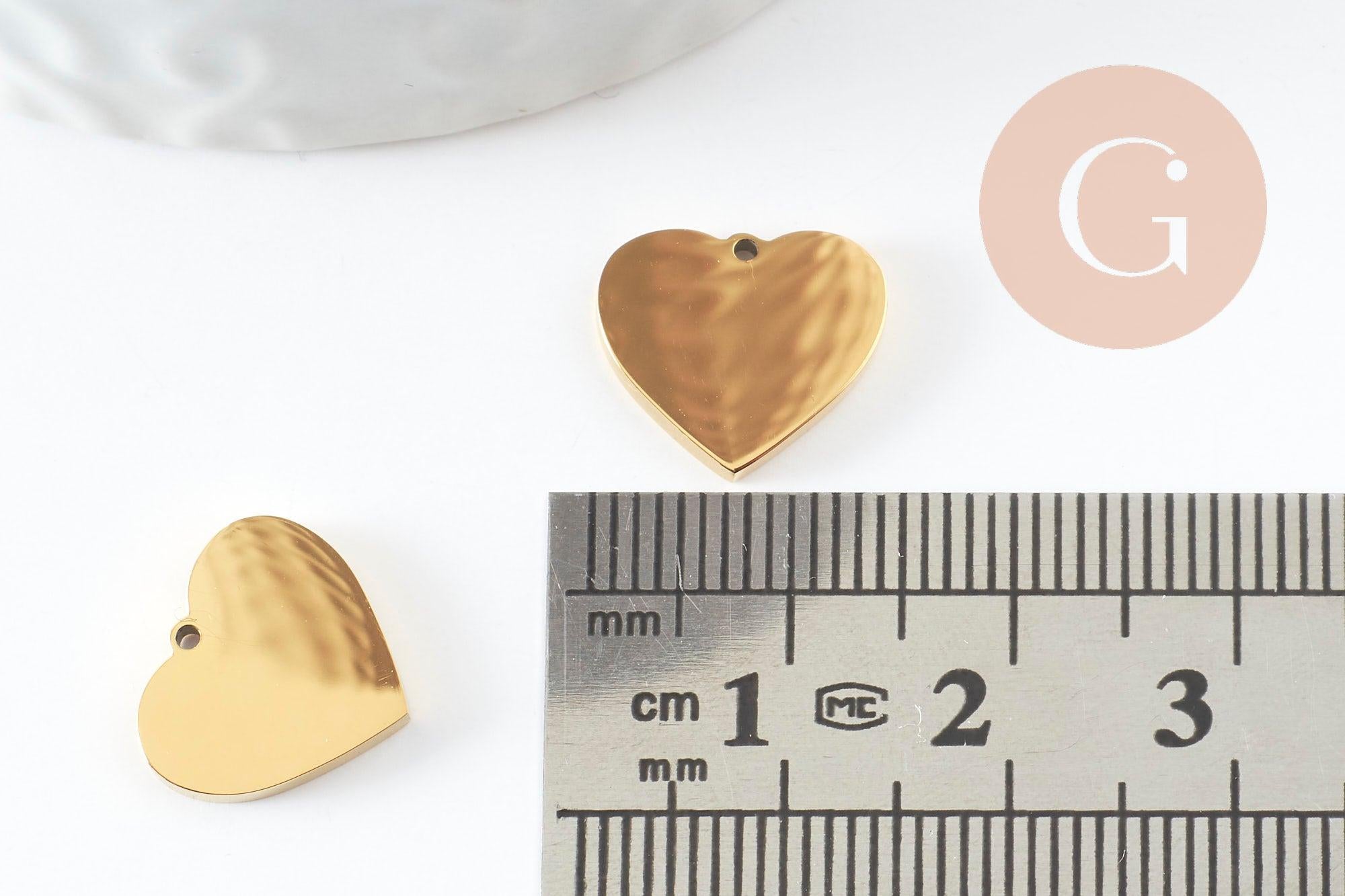 Pendentif coeur acier 201 inoxydable doré 13mm finition Miroir, x1 (G10182)