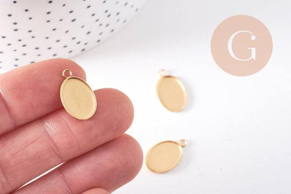 Create elegant and personalized jewelry with this IP gold-plated 304 stainless steel oval medal pendant , designed to hold a 14x10mm cabochon . Its gold-plated (IP) coating guarantees a long-lasting shine and excellent resistance to wear and oxidation. Ideal for creating refined necklaces, bracelets or earrings .