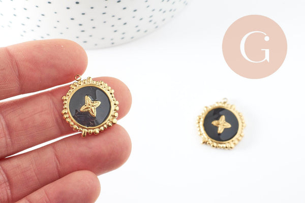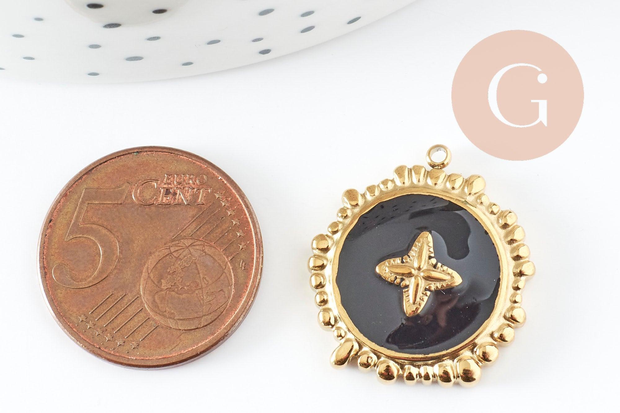 This 23mm pendant combines the durability of gold-tone stainless steel with the sophisticated aesthetic of black resin, providing a striking contrast and a nickel-free finish that is ideal for sensitive wearers. It is a perfect choice for those looking to create jewelry that is both modern and timeless.