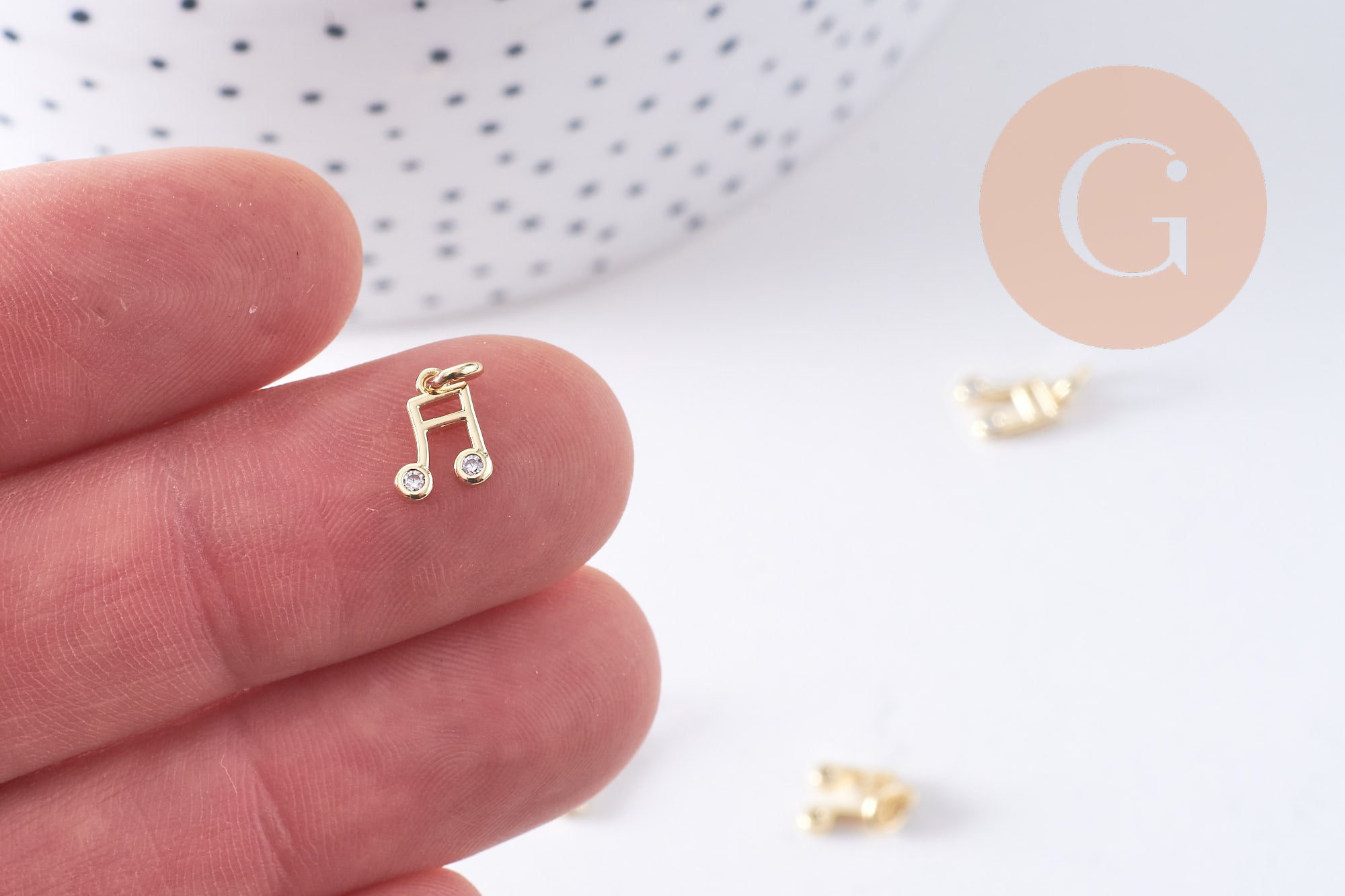 Fall for this small musical note pendant , adorned with a brilliant zircon. In gold-plated brass, it will add an elegant and personalized touch to your jewelry, perfect for music lovers and enthusiasts.