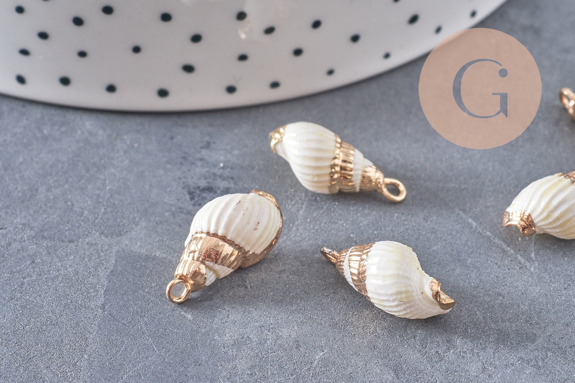 Pendentif coquillage blanc spirale fer doré 20mm, x2 (G0706)