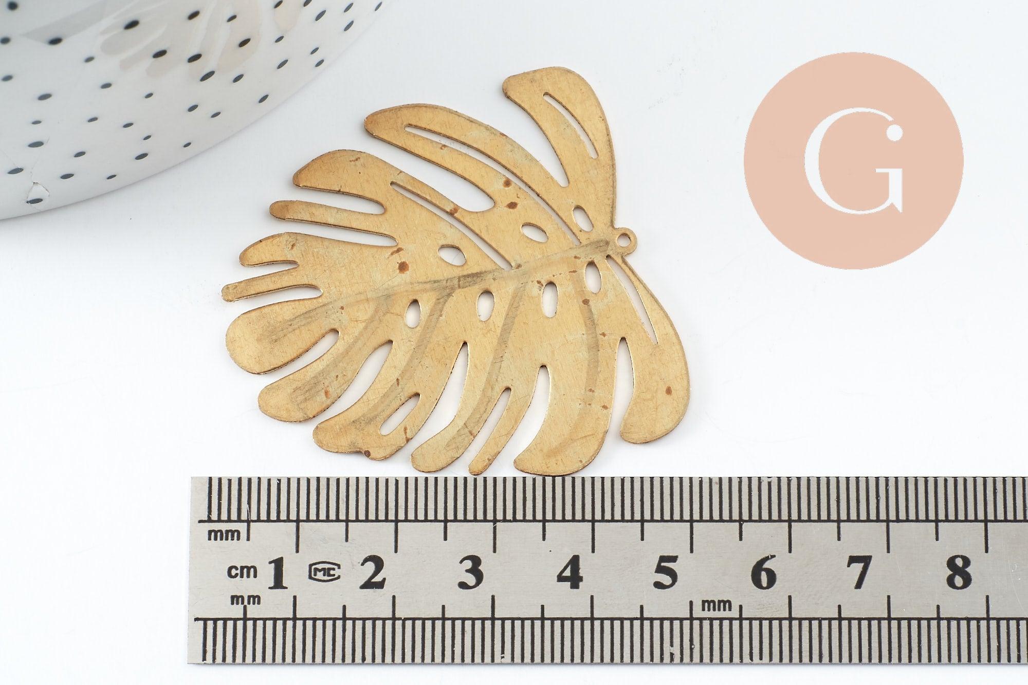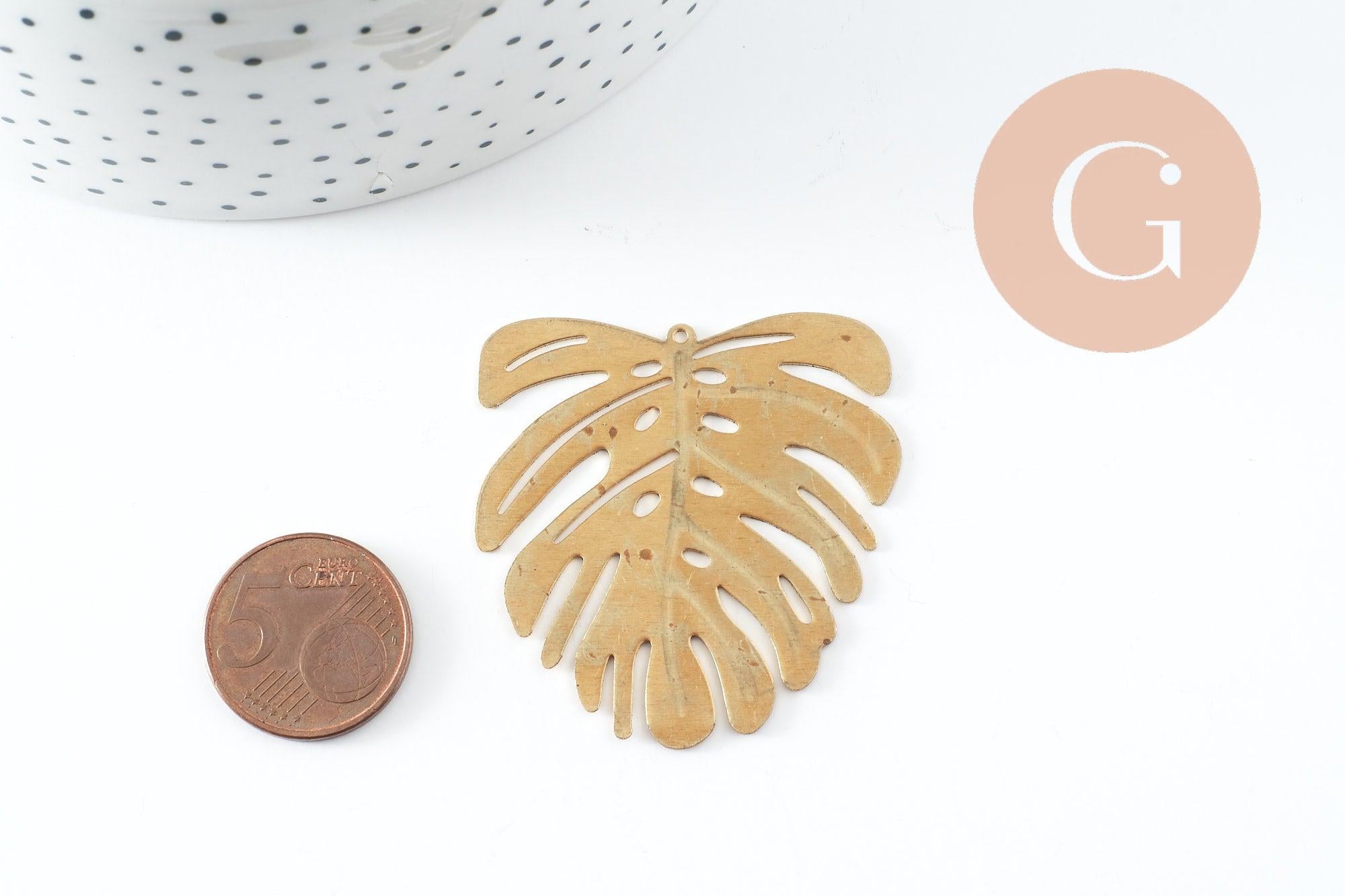 Brass leaf pendant, jewelry supply, raw brass charm, brass jewelry, monstera leaf, jewelry, raw brass pendant, unit, 49mm