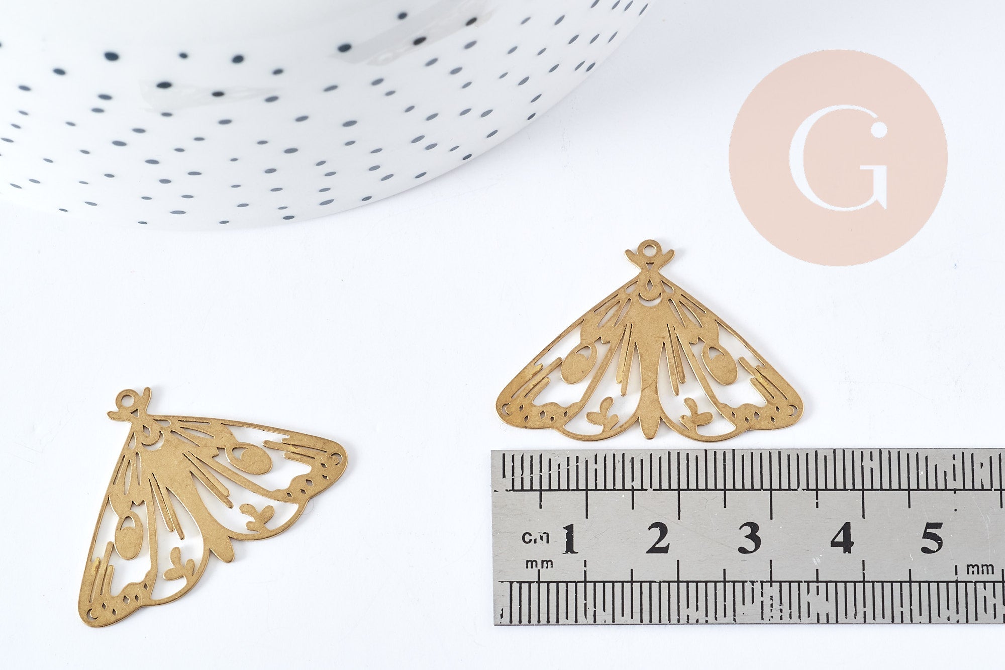 Pendentif Papillon laiton brut 34mm, pendentif pour création bijoux vintage x1 G9251