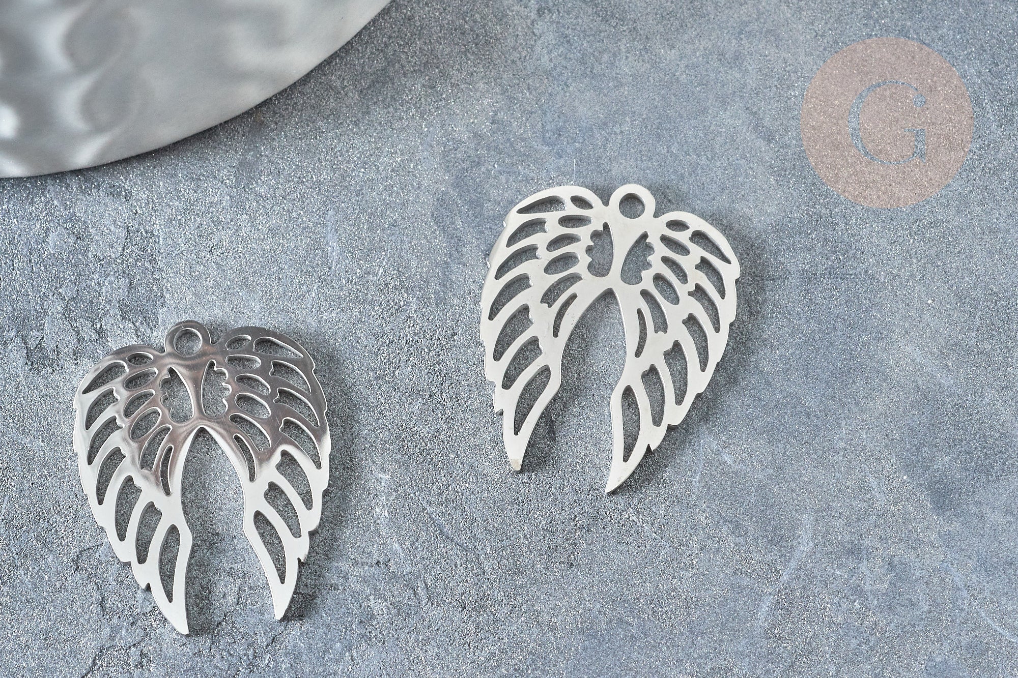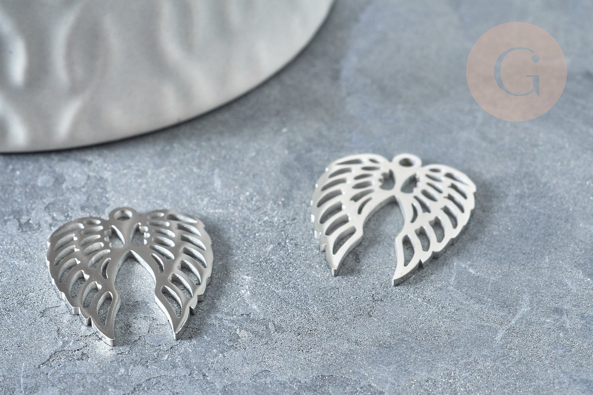 Adopt this pendant representing angel wings in 201 silver stainless steel . Angel wings are also trendy in costume jewelry collections .