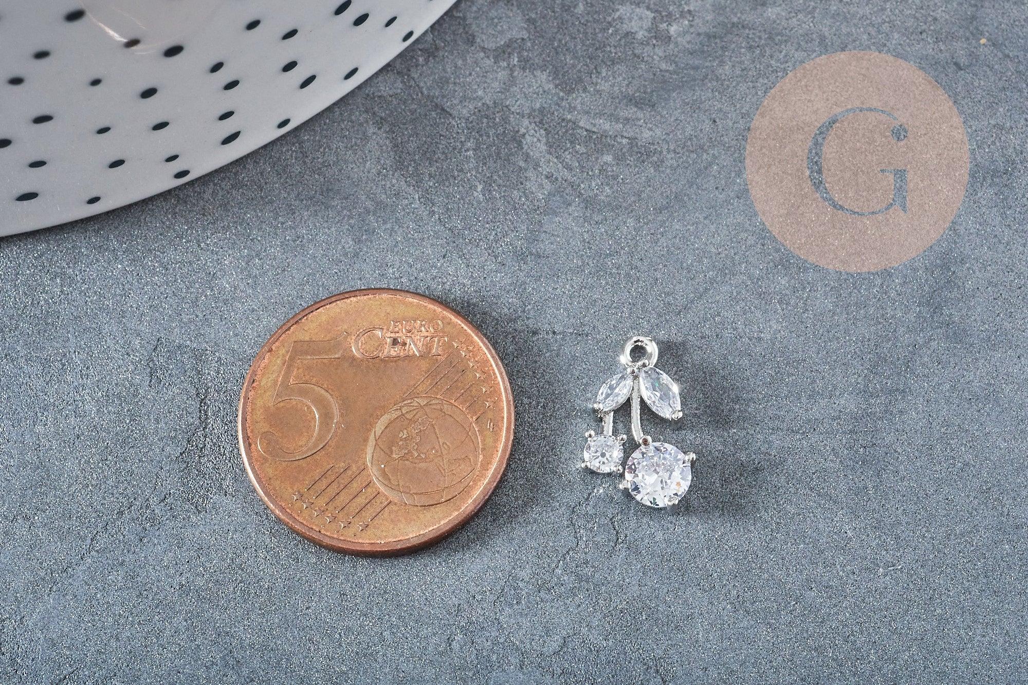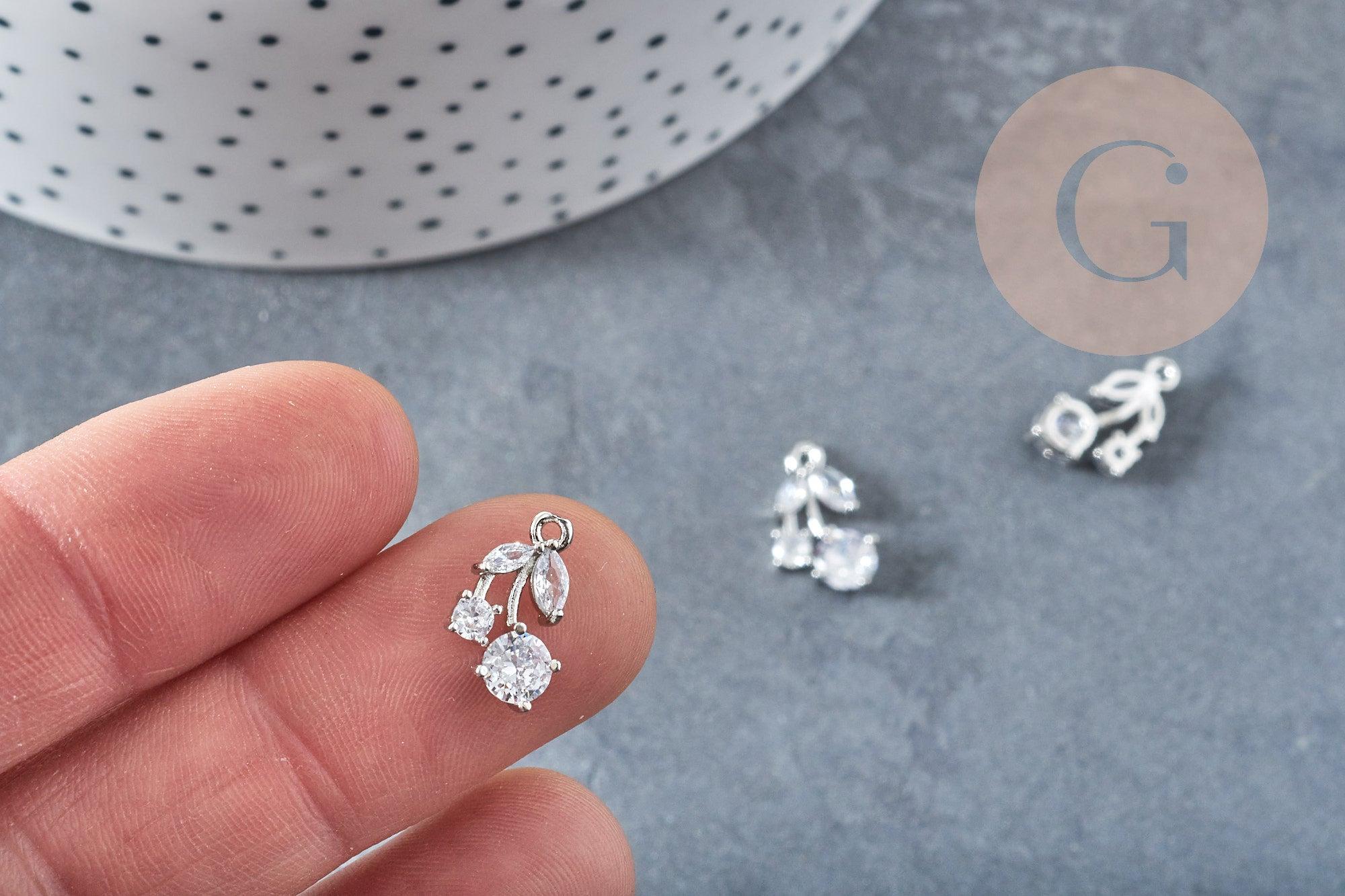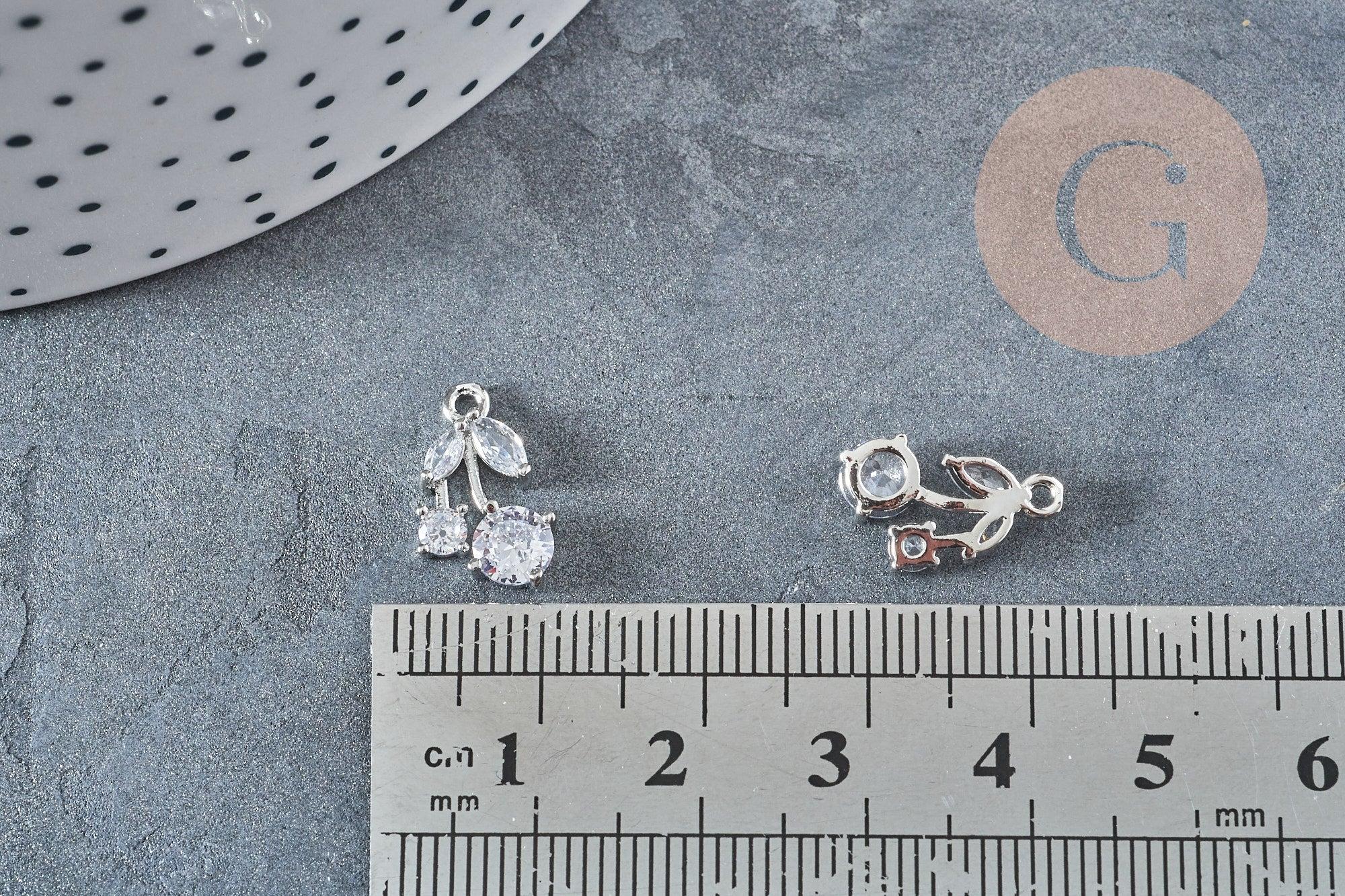 Create many DIY costume jewelry with this platinum brass cherry pendant , decorated with white zircon crystals. A love of a pendant!