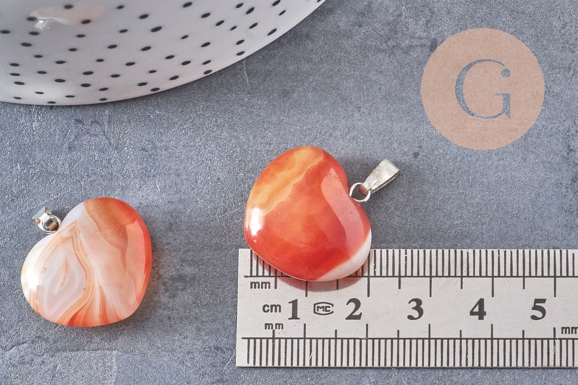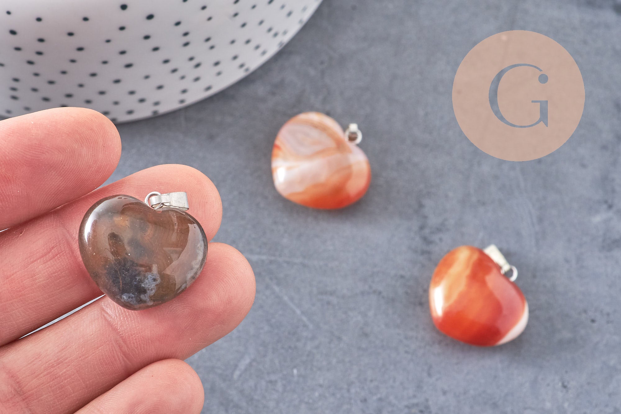 Pendentif coeur cornaline naturelle laiton argenté, pendentif pierre cornaline naturelle, bijoux en pierre naturelle, 23mm, x1 G5583