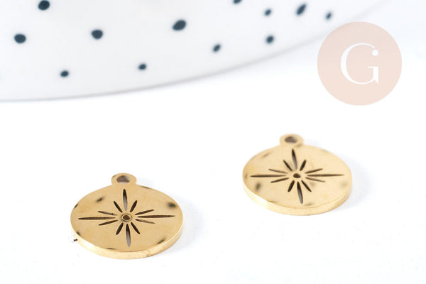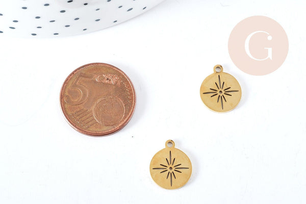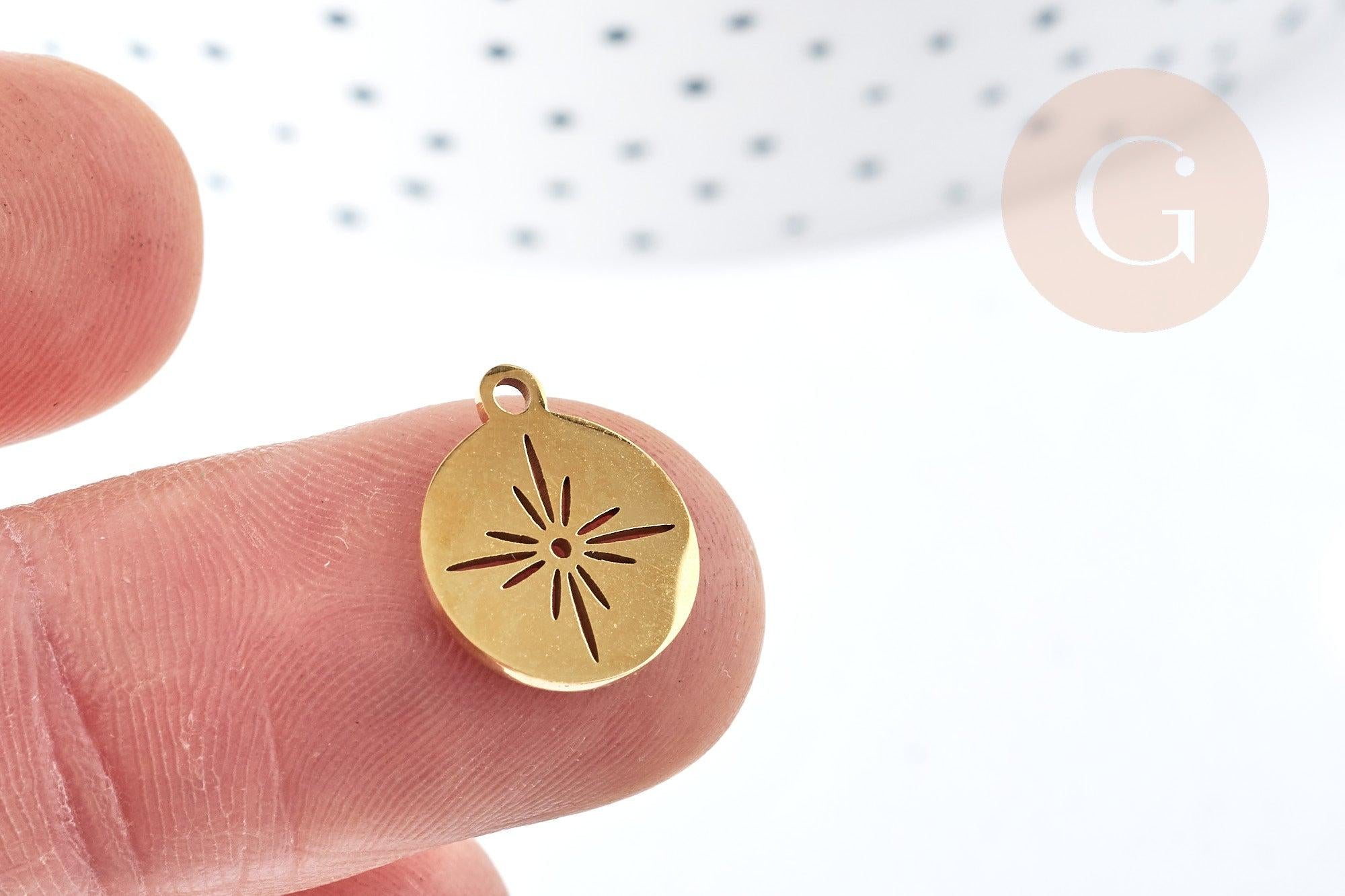 The round flat star pendant in gold-plated steel is a unique element for creating stainless steel jewelry.