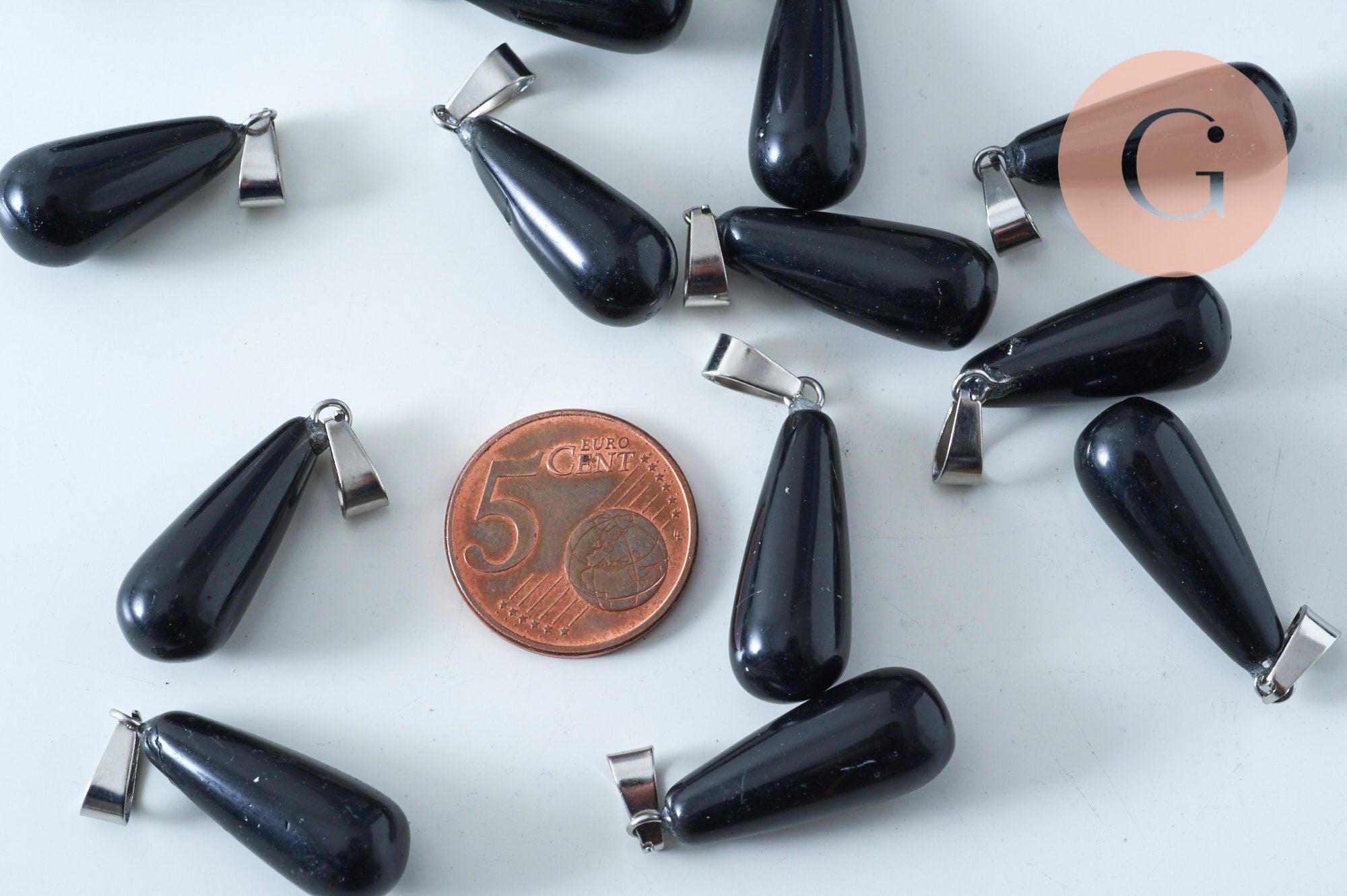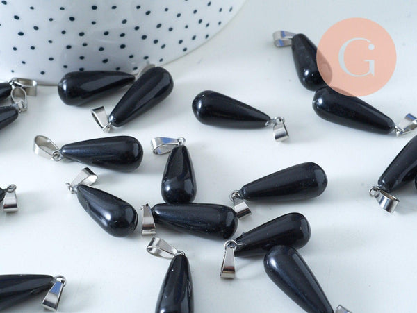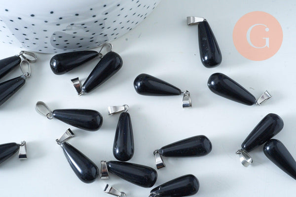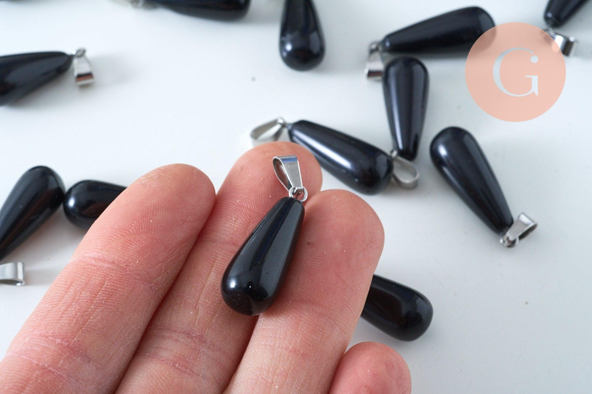 Use this dyed and rolled natural black agate pendant with its platinum stainless steel support for your DIY jewelry creations.