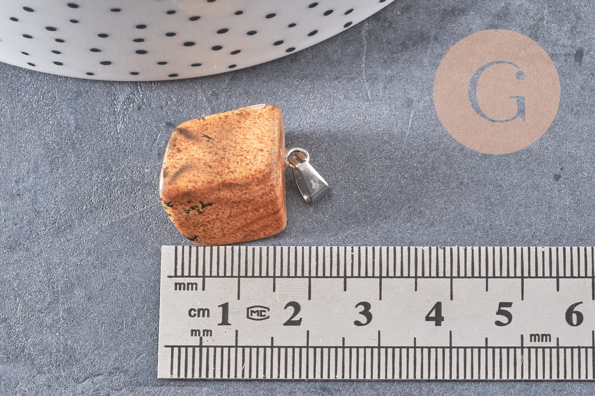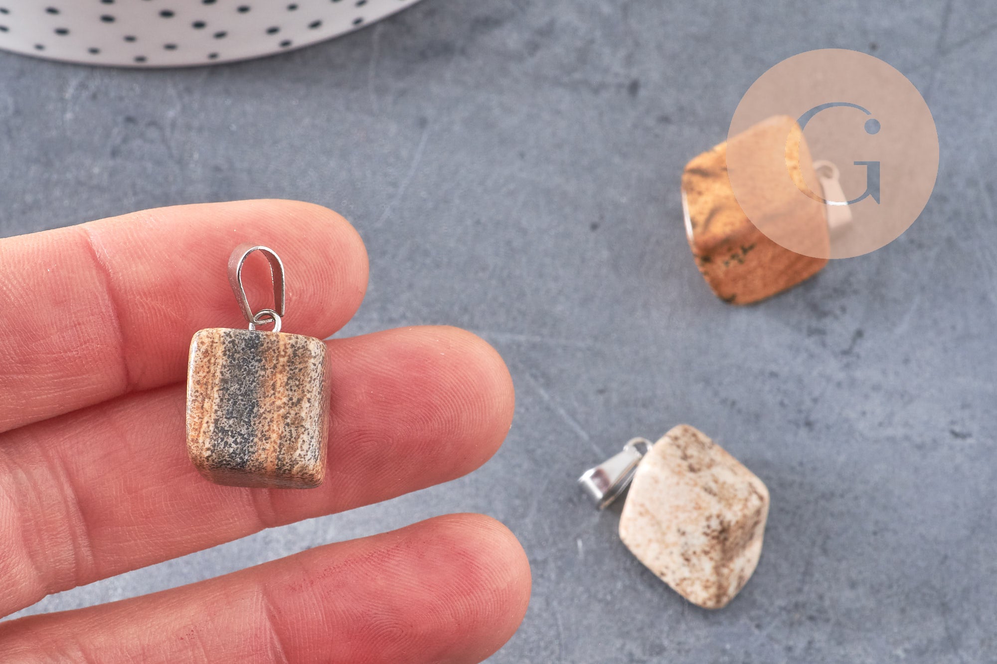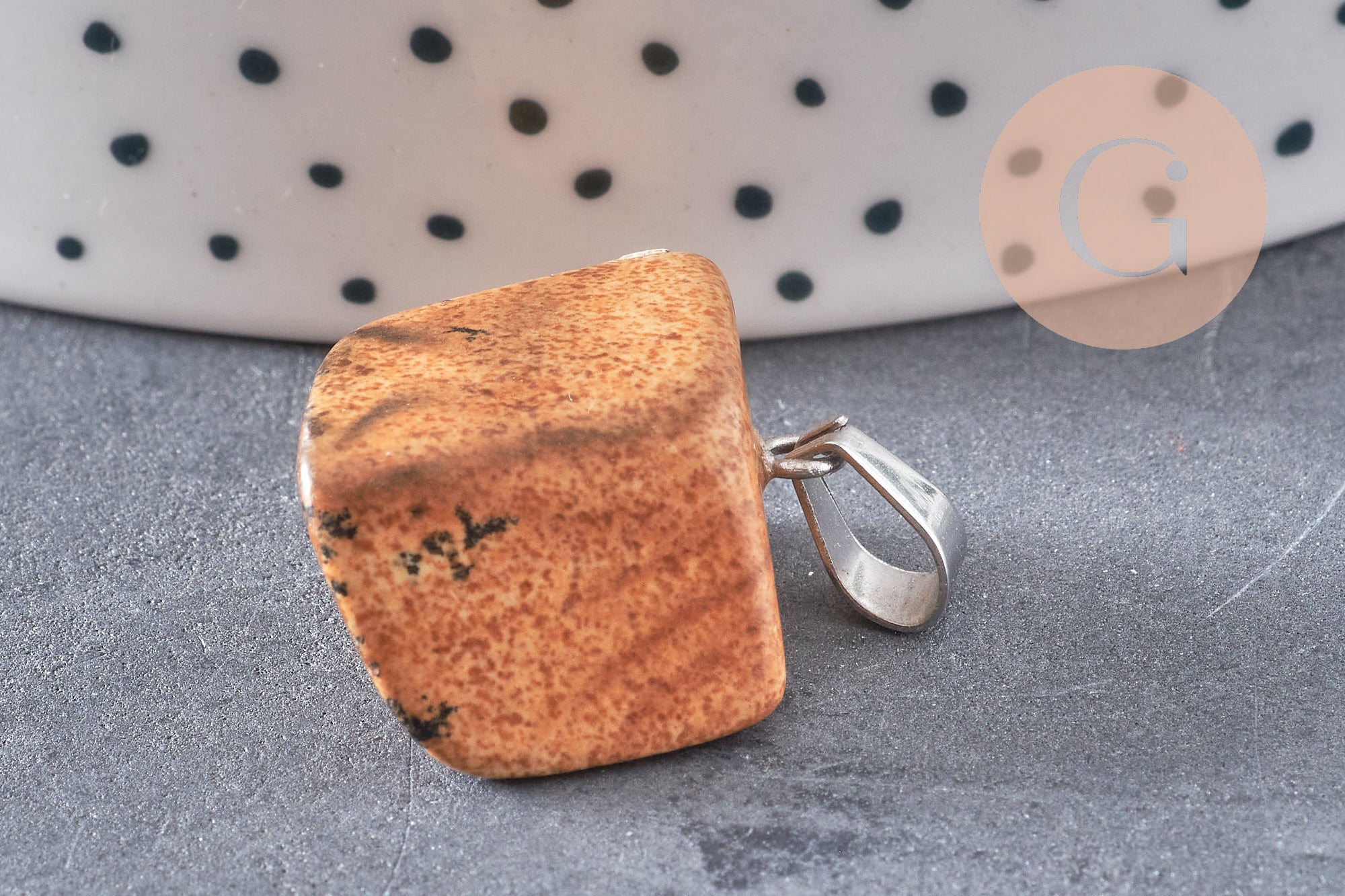 You can create magnificent necklaces using this natural landscape jasper mineral pendant on a platinum-colored support.