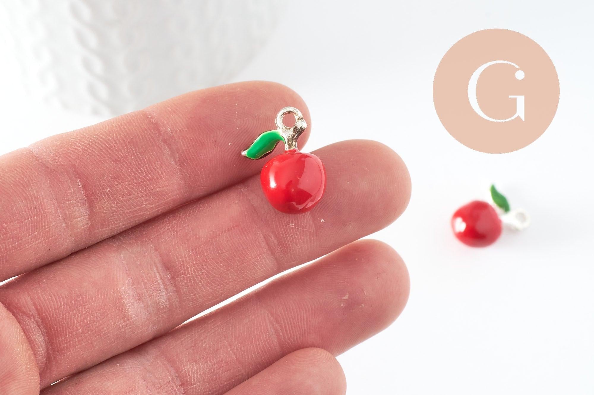 An adorable apple pendant in silver zamac covered with red and green enamel.