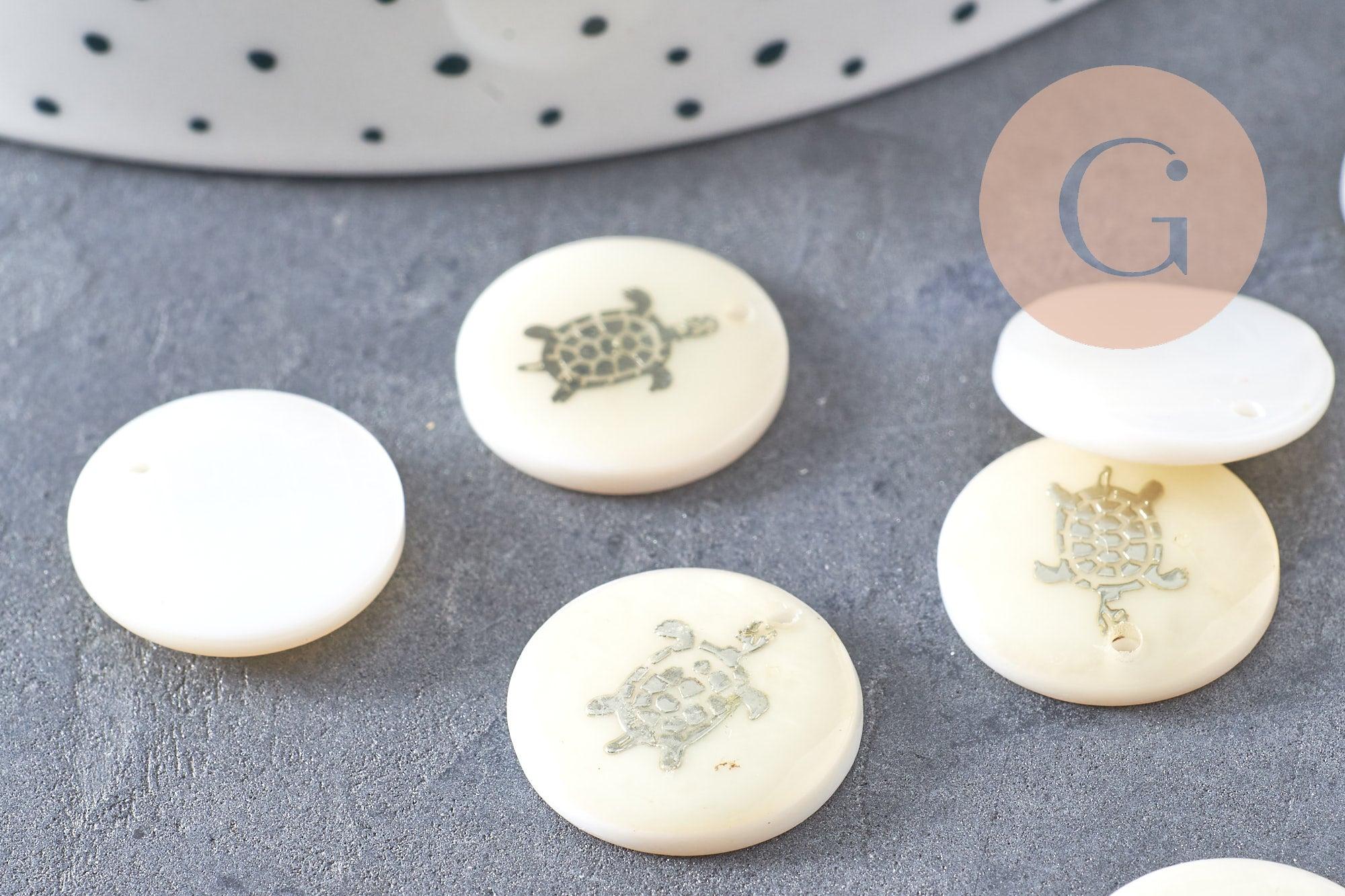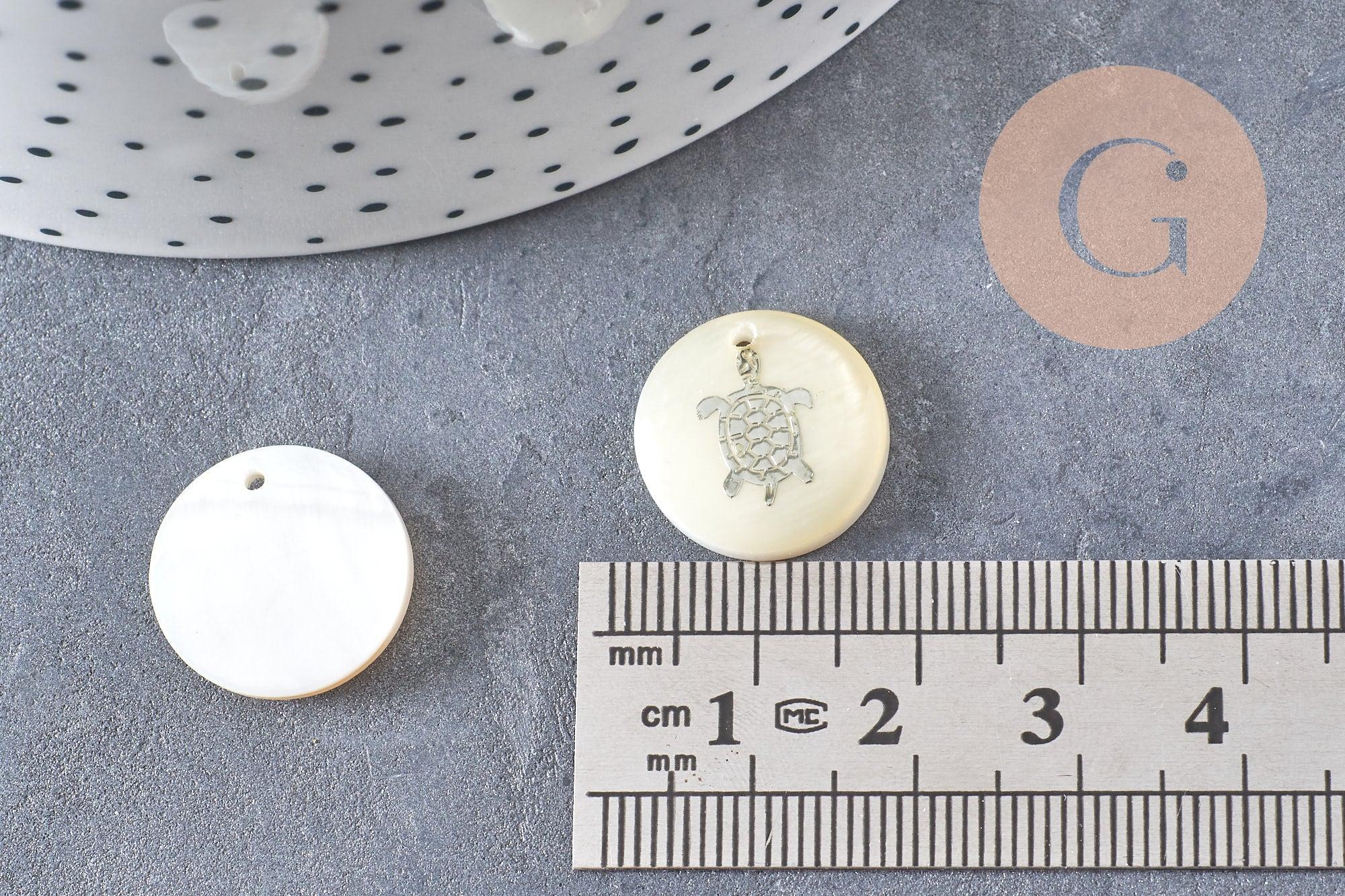 Round mother-of-pearl turtle pendant, creative supply, turtle pendant, white shell, natural shell, jewelry creation, 16mm, 1 hole