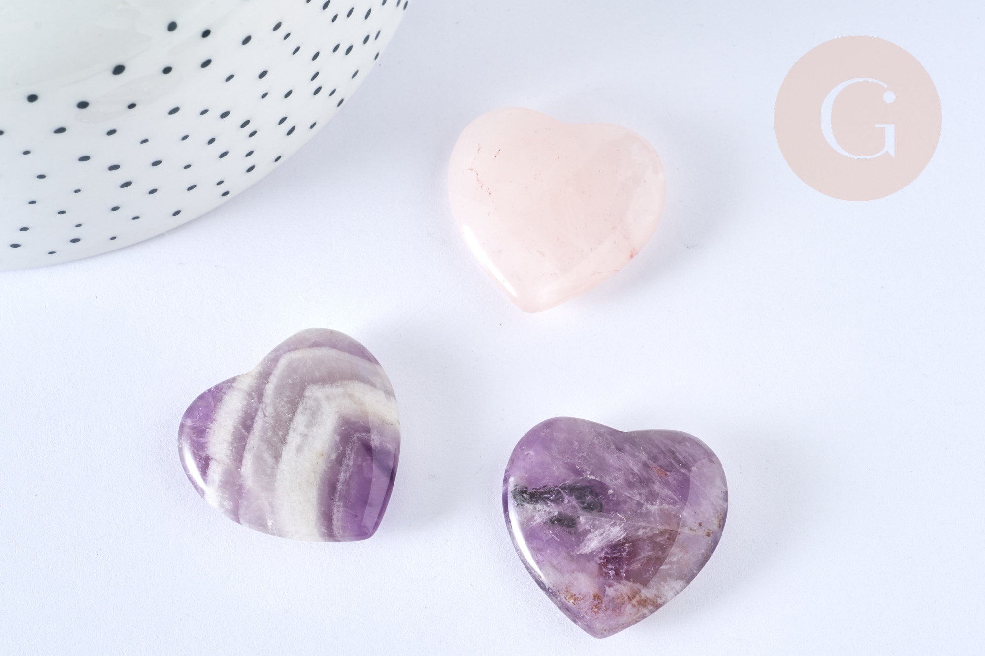 Fall for this little natural amethyst or natural rose quartz heart , to carry against yourself in a pouch or as a decoration ready for you.