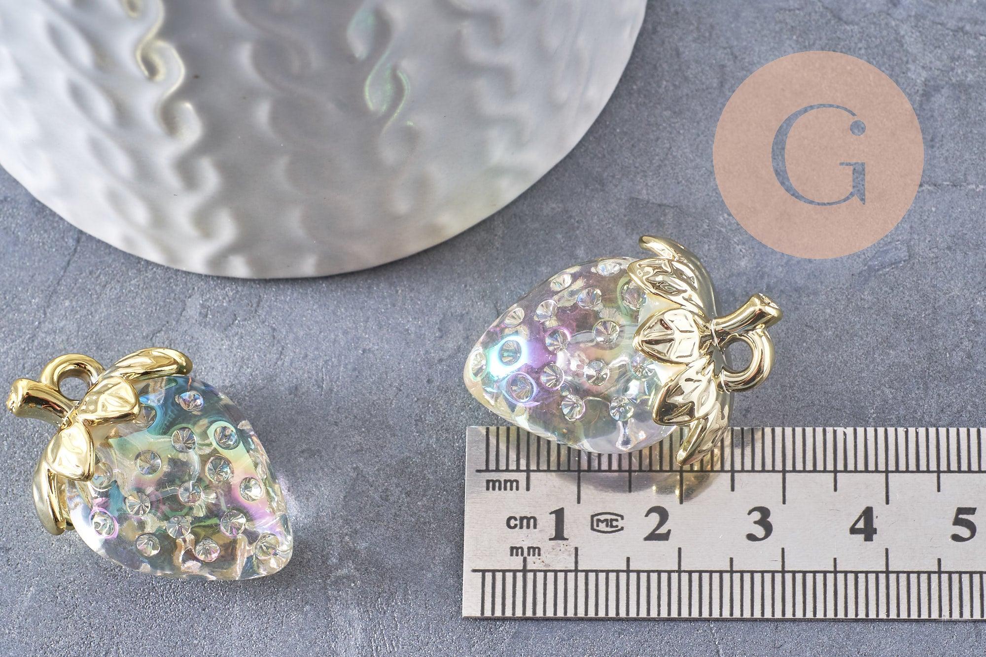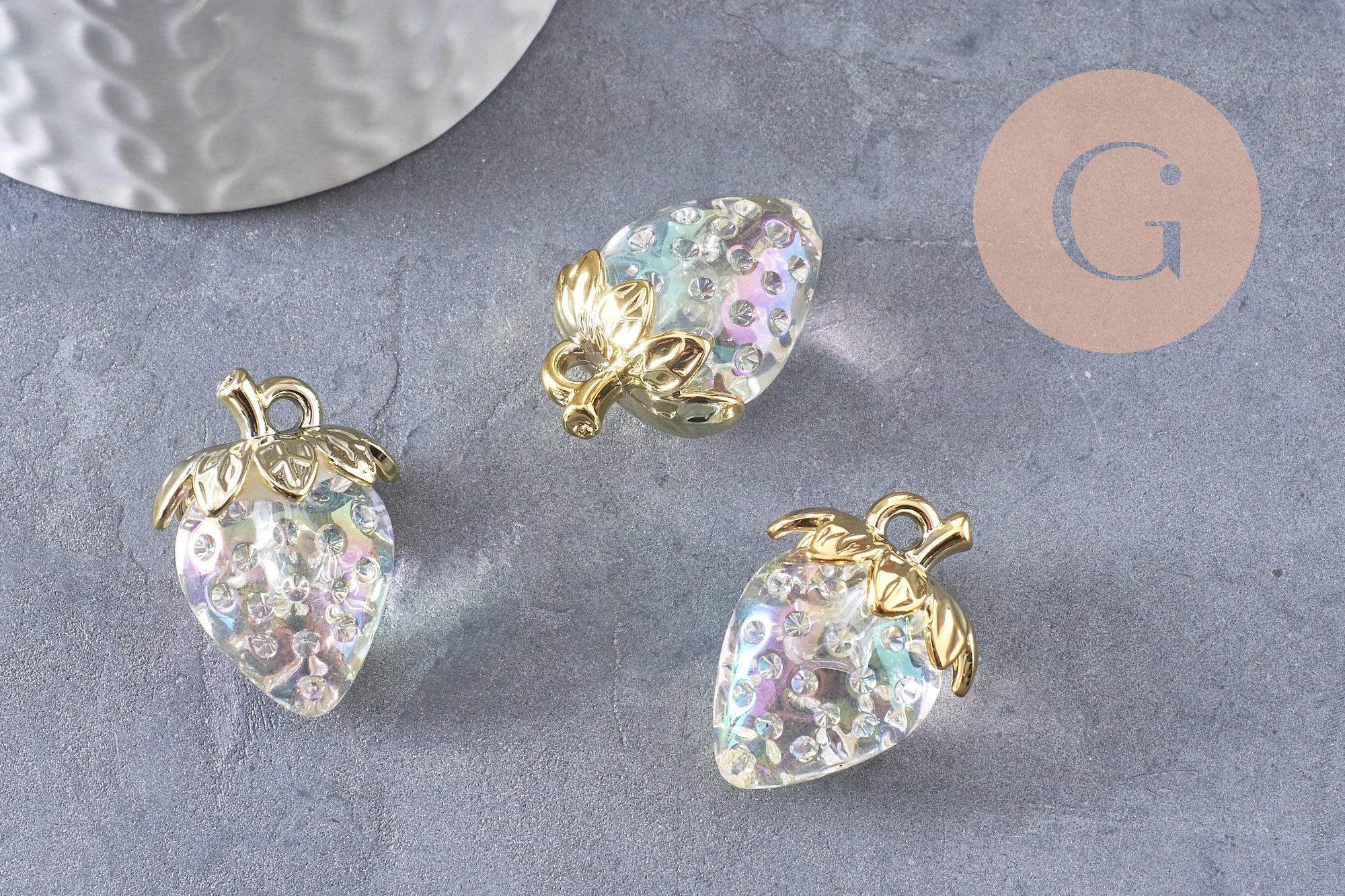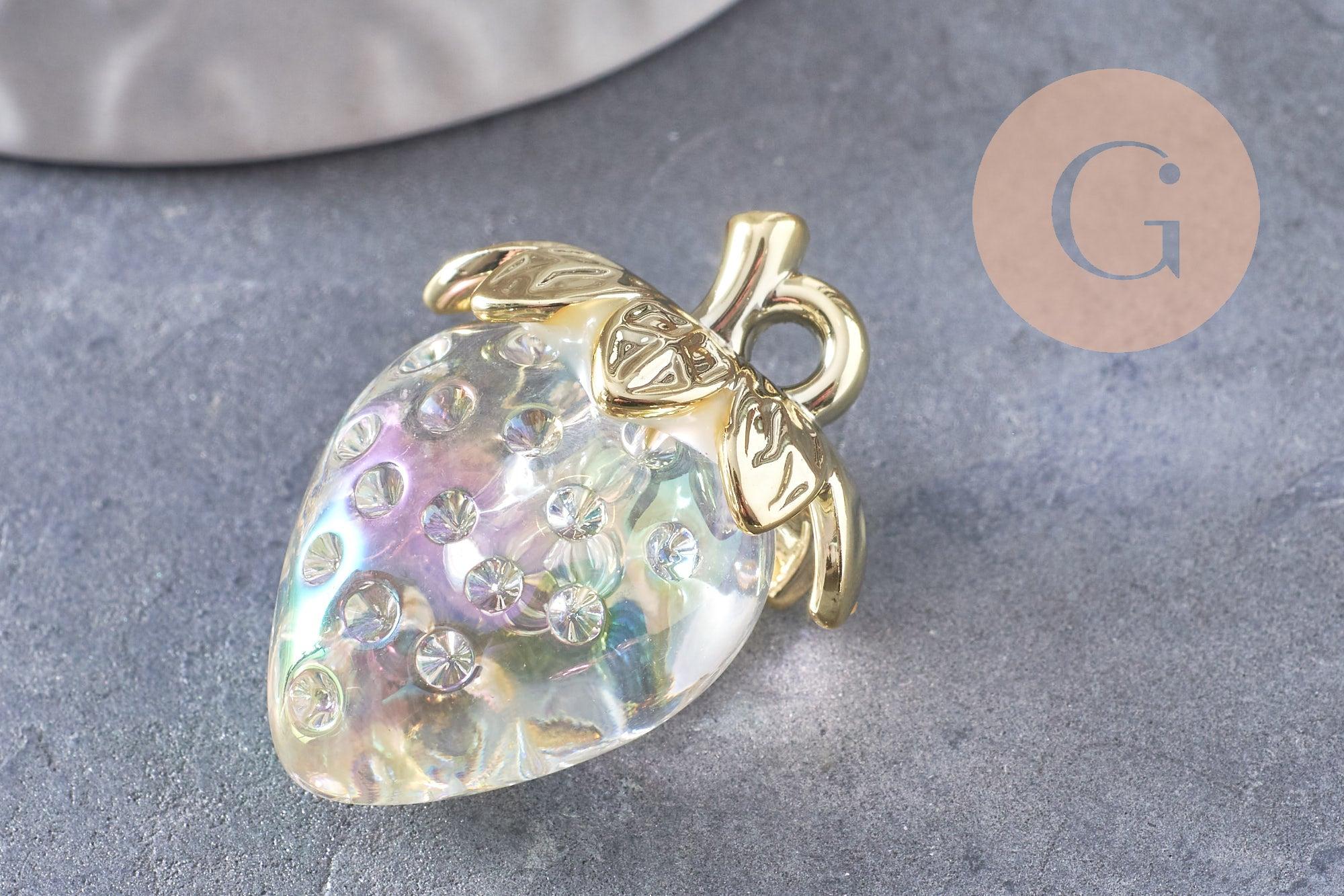 Add a delicious and original touch to your creations with this strawberry charm in transparent resin and golden brass .