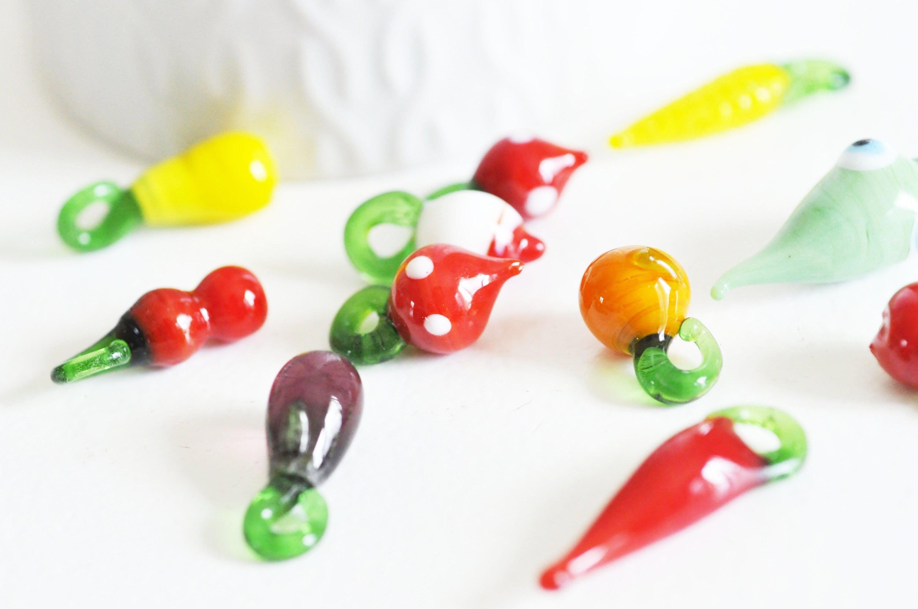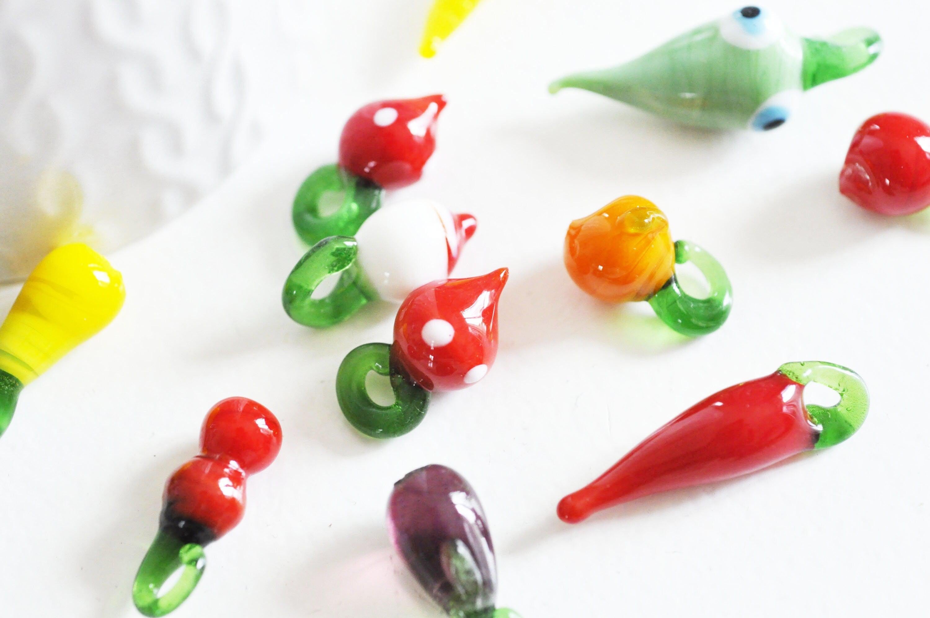 A set of handcrafted glass fruit pendants to hang from your hoop earrings, necklaces and other accessories or jewelry.