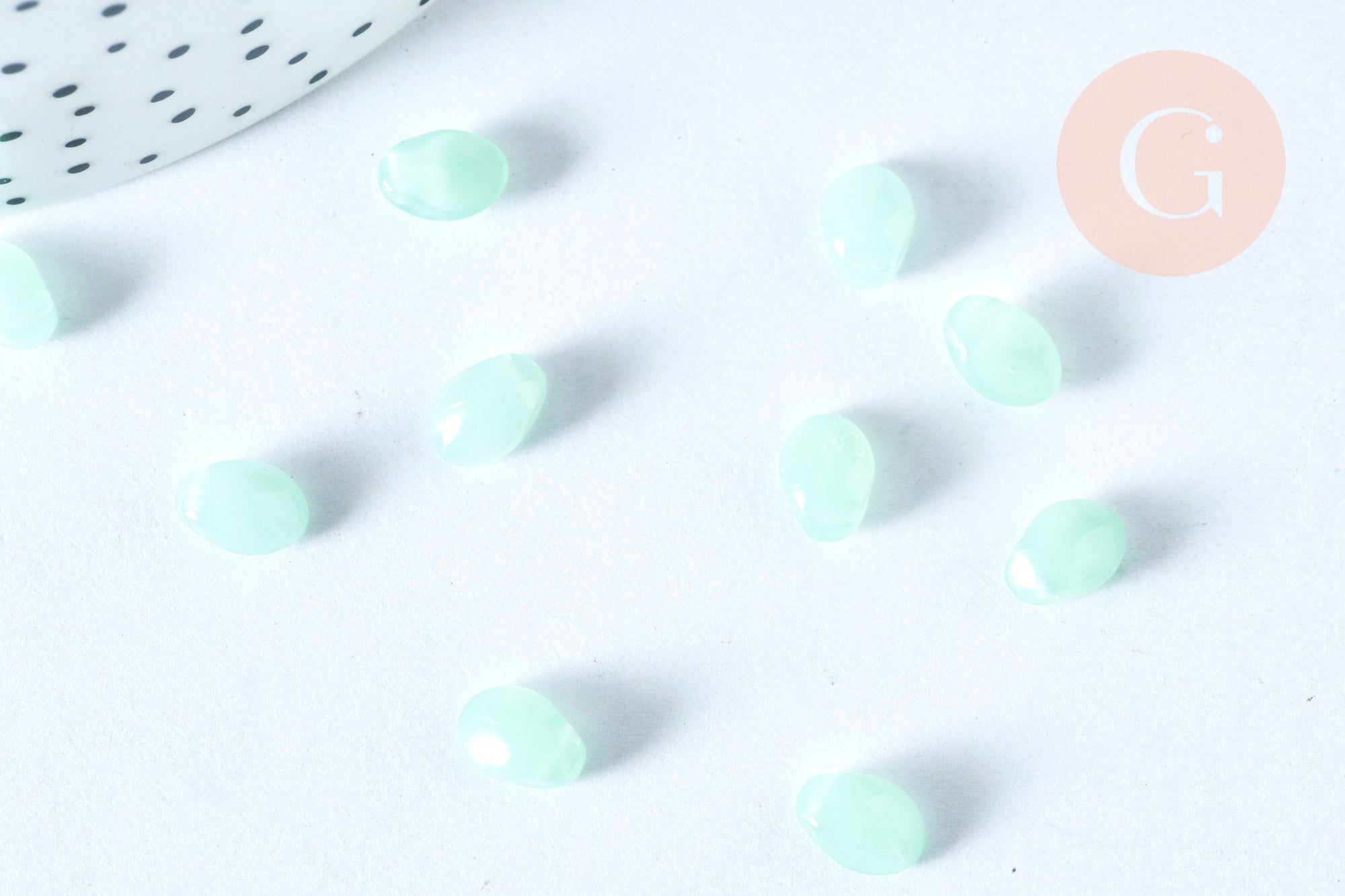 Perle ovale verre imitation jade vert clair 8.5mm, création de bijoux DIY, x10 G6951