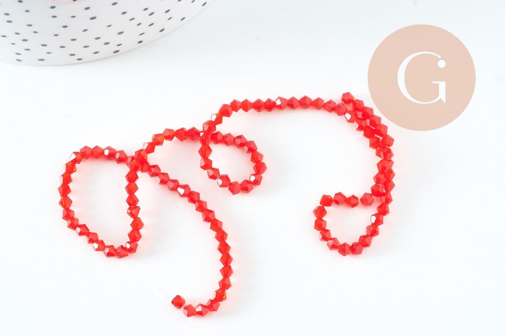 These transparent red glass bicone beads, inspired by the Austrian crystal style , are faceted to offer a brilliant shine. Their intense and luminous hue brings character to your DIY creations, while remaining elegant and refined.