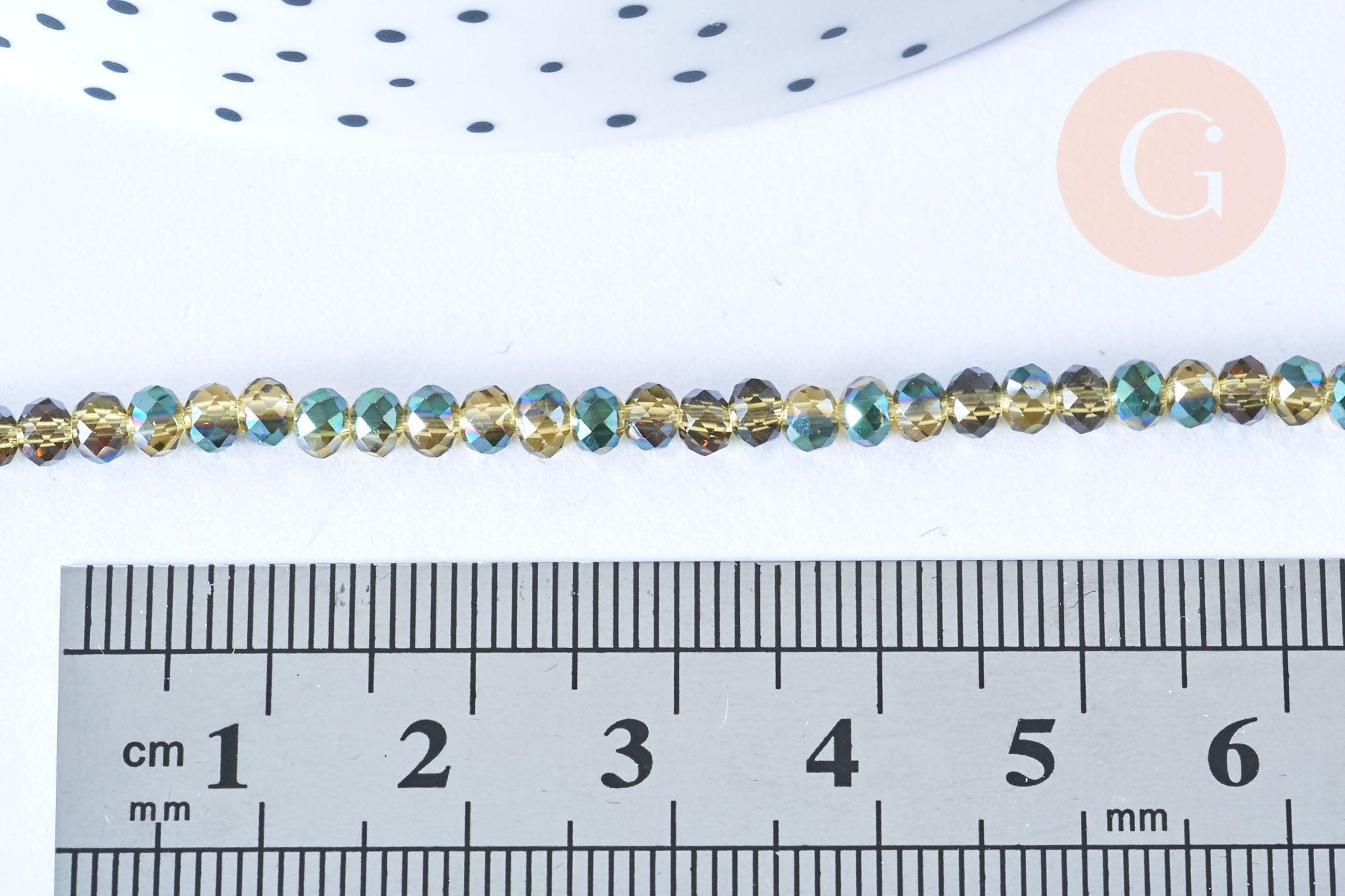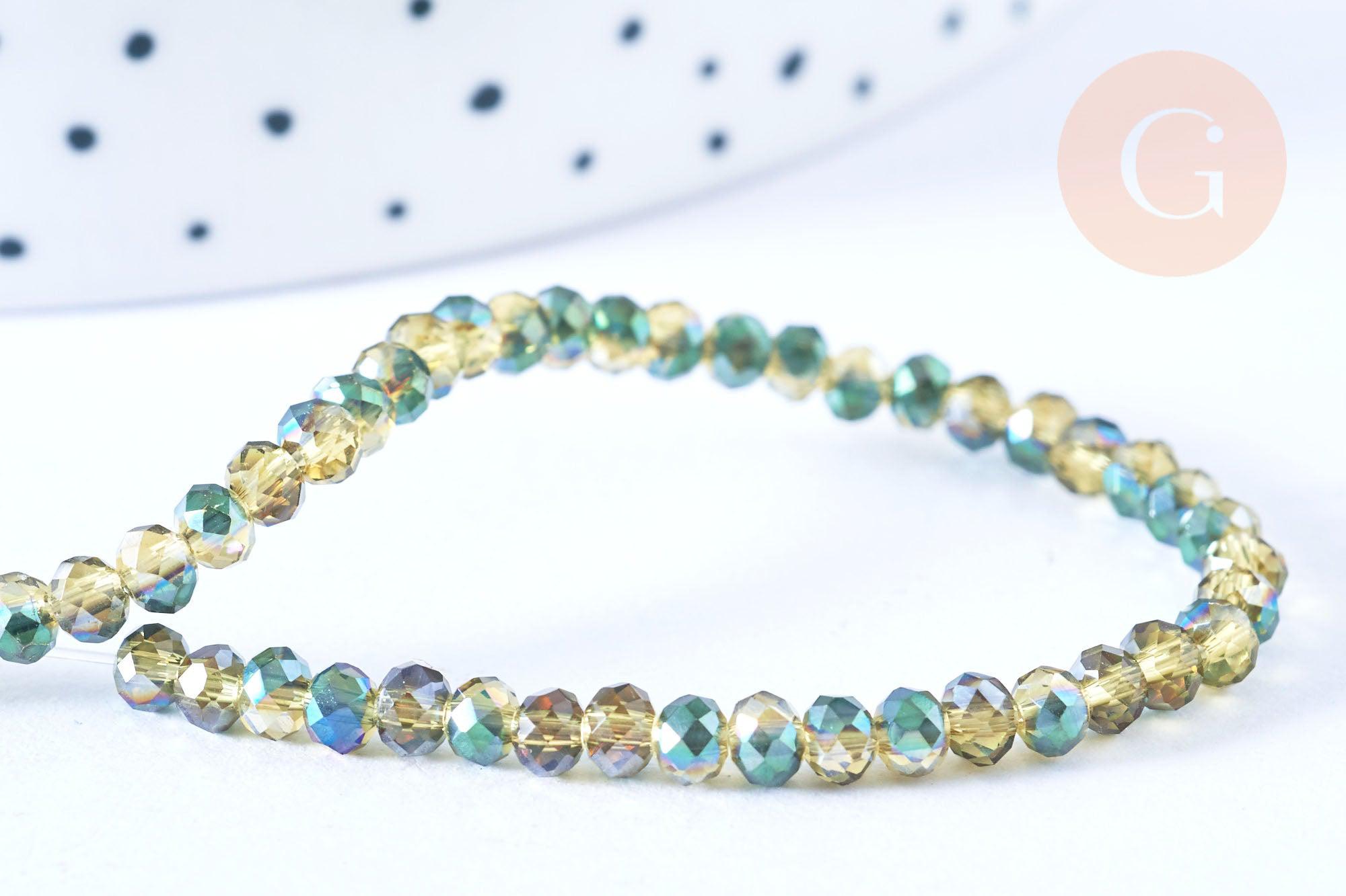 Perles toupies cristal bicolore jaune vert irisé 3.5x2.5mm,Perle verre facette, fil 25.4cm x1 (G6761)