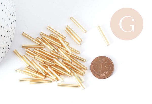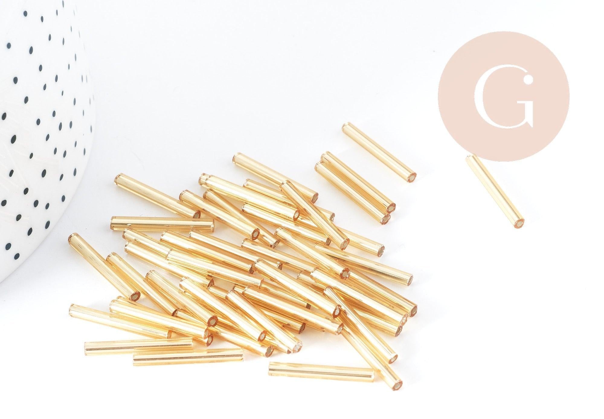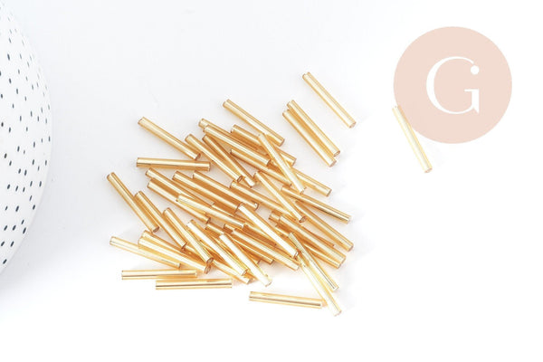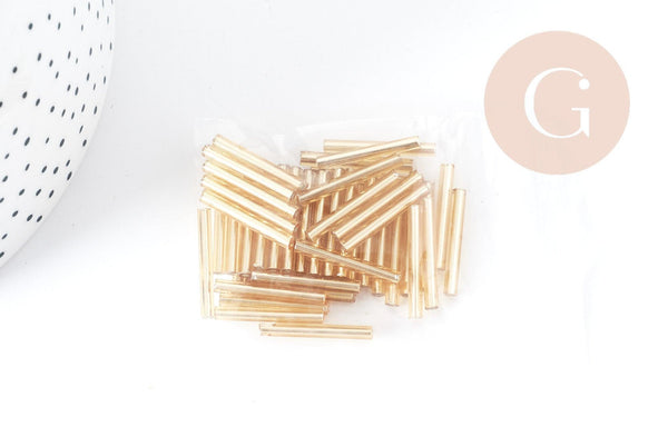 Golden tube seed beads ideal for many jewelry creations . Its metallic gold color will bring a trendy touch for the whole year.