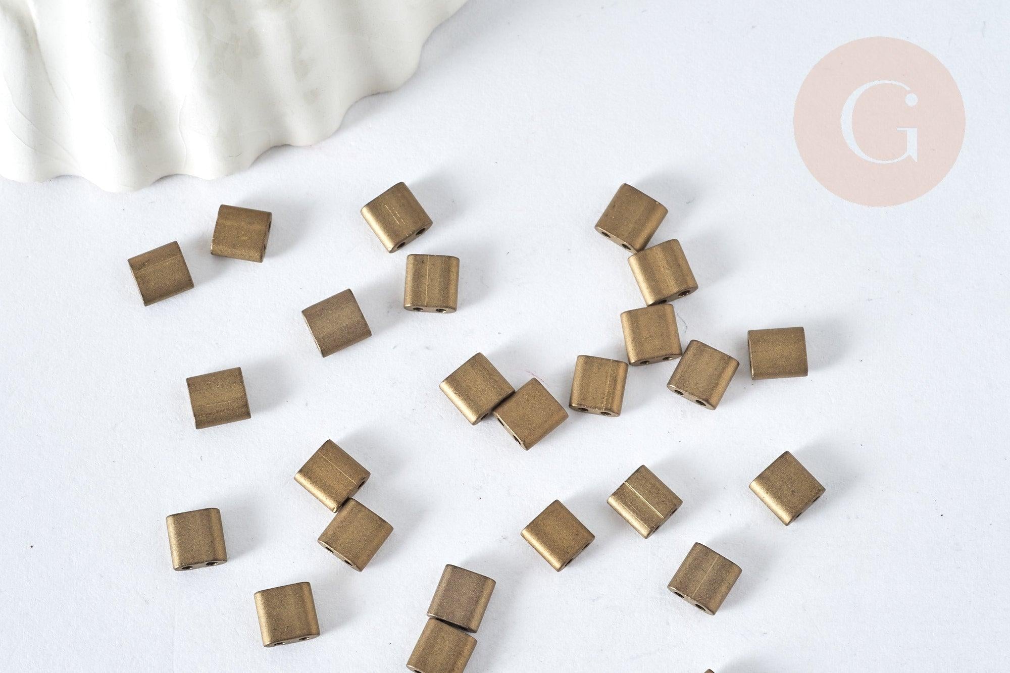 The ideal square-shaped beads, in bronze-colored glass, for making colorful jewelry, using elastic thread .