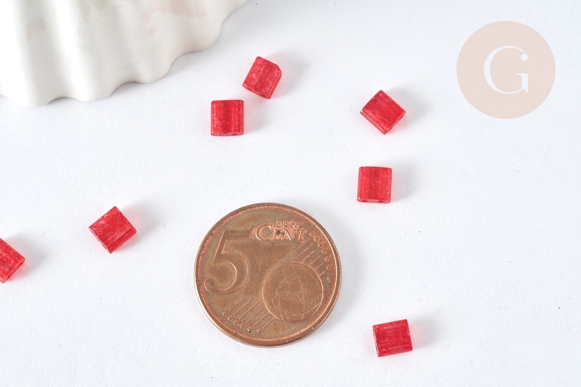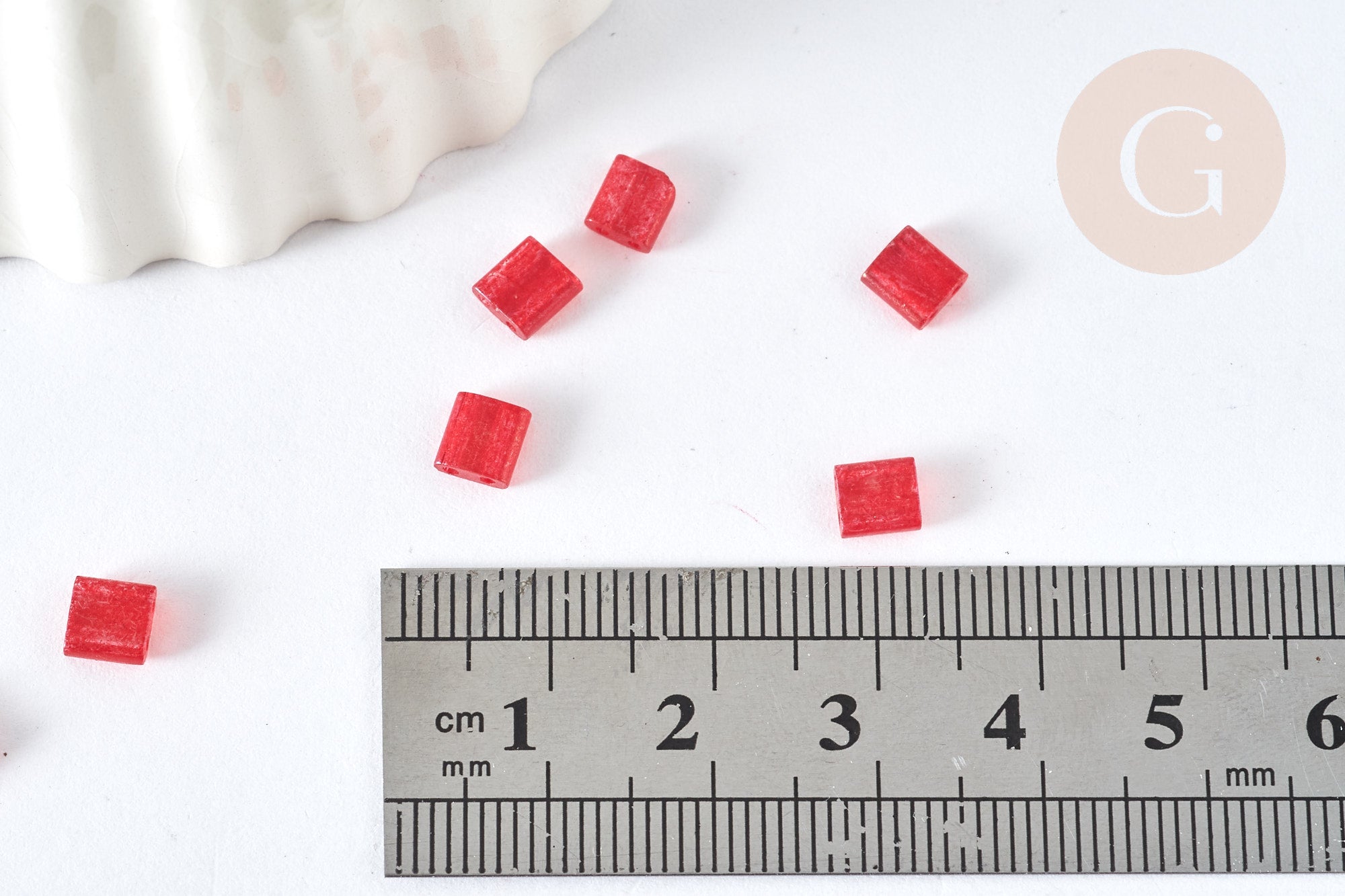 The ideal square-shaped beads, in red glass, for making colorful jewelry, using elastic thread .
