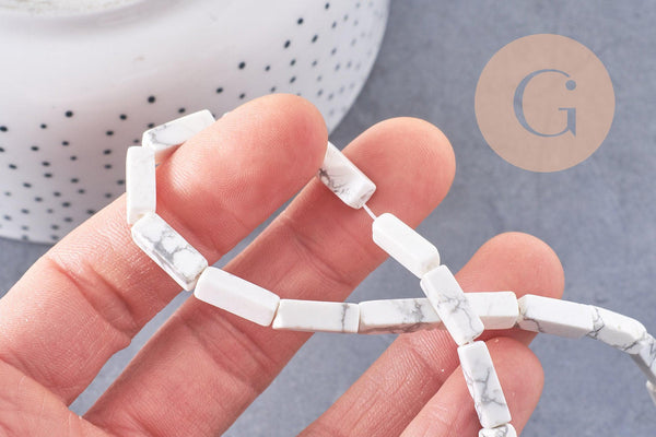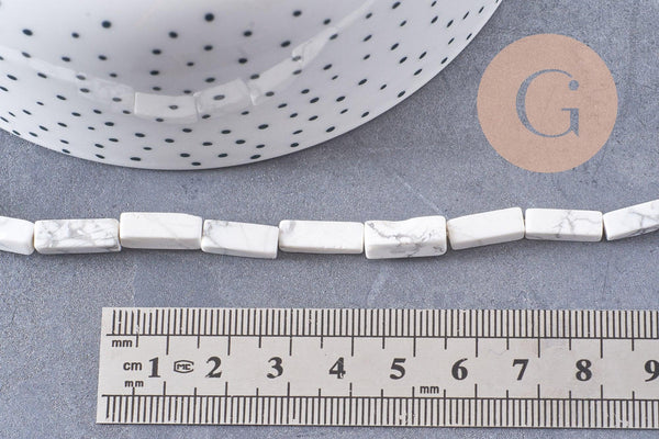 White howlite rectangle bead, creative supply, howlite bead, natural stone, natural howlite, stone bead, 13mm, 29cm thread