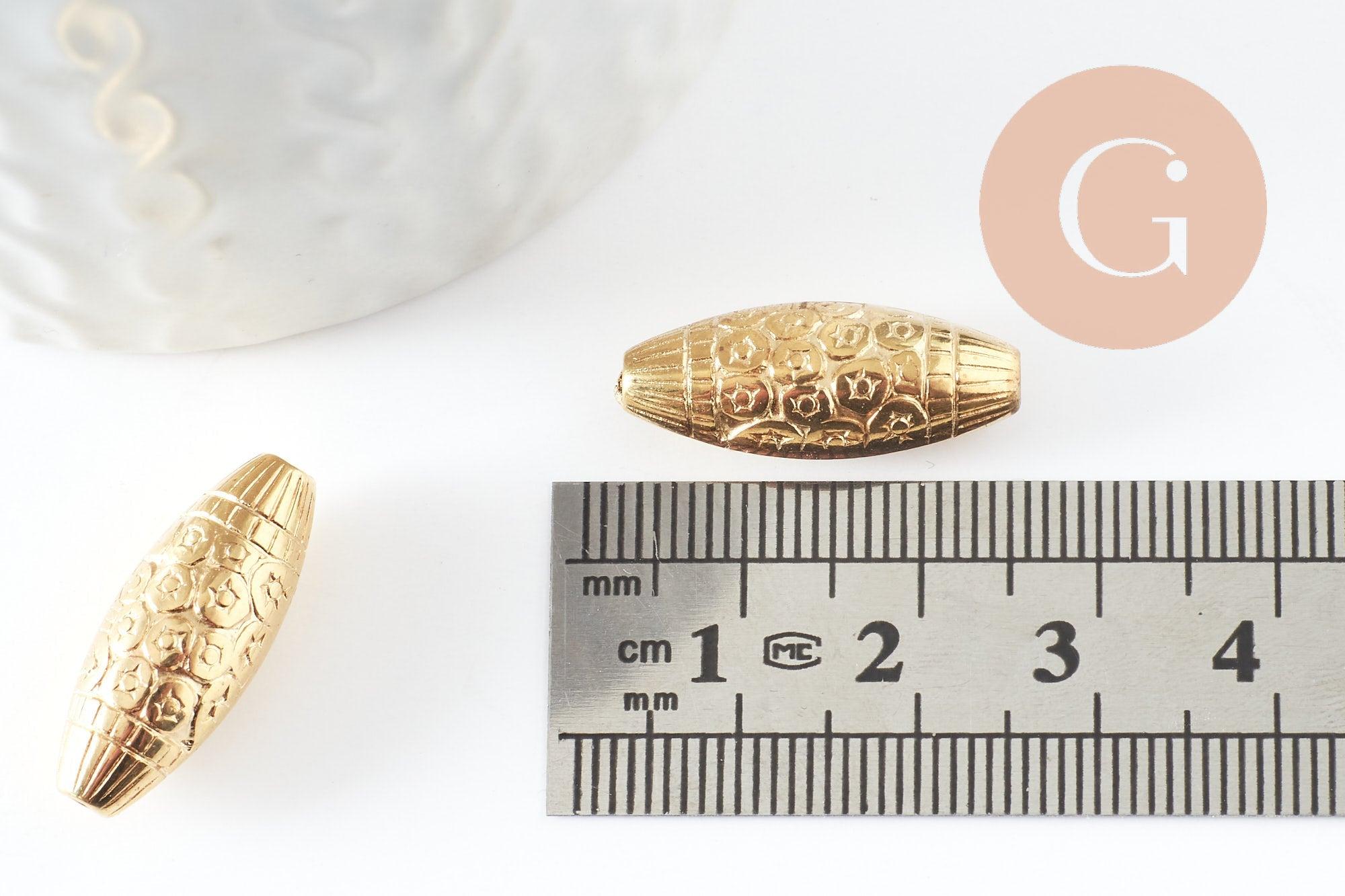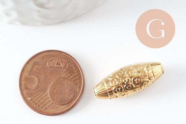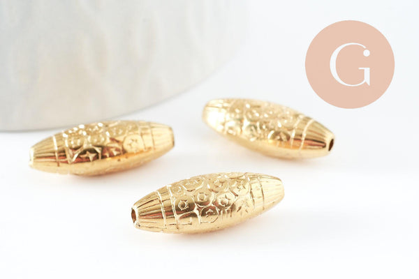 Perle ovale gravée plastique doré 23mm, x5 (G4524)