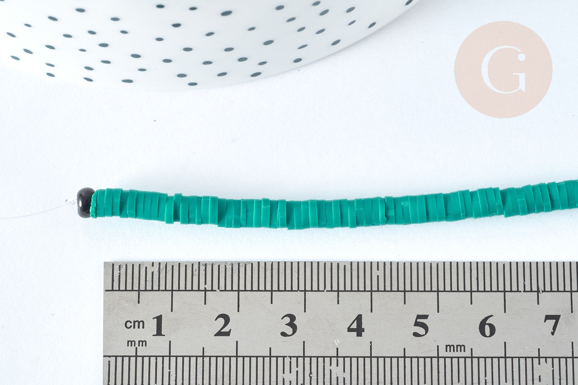 Perles disques heishi polymère vert 4x1 mm, fabrication bijoux heishi, le fil de 39.9cm - G7190