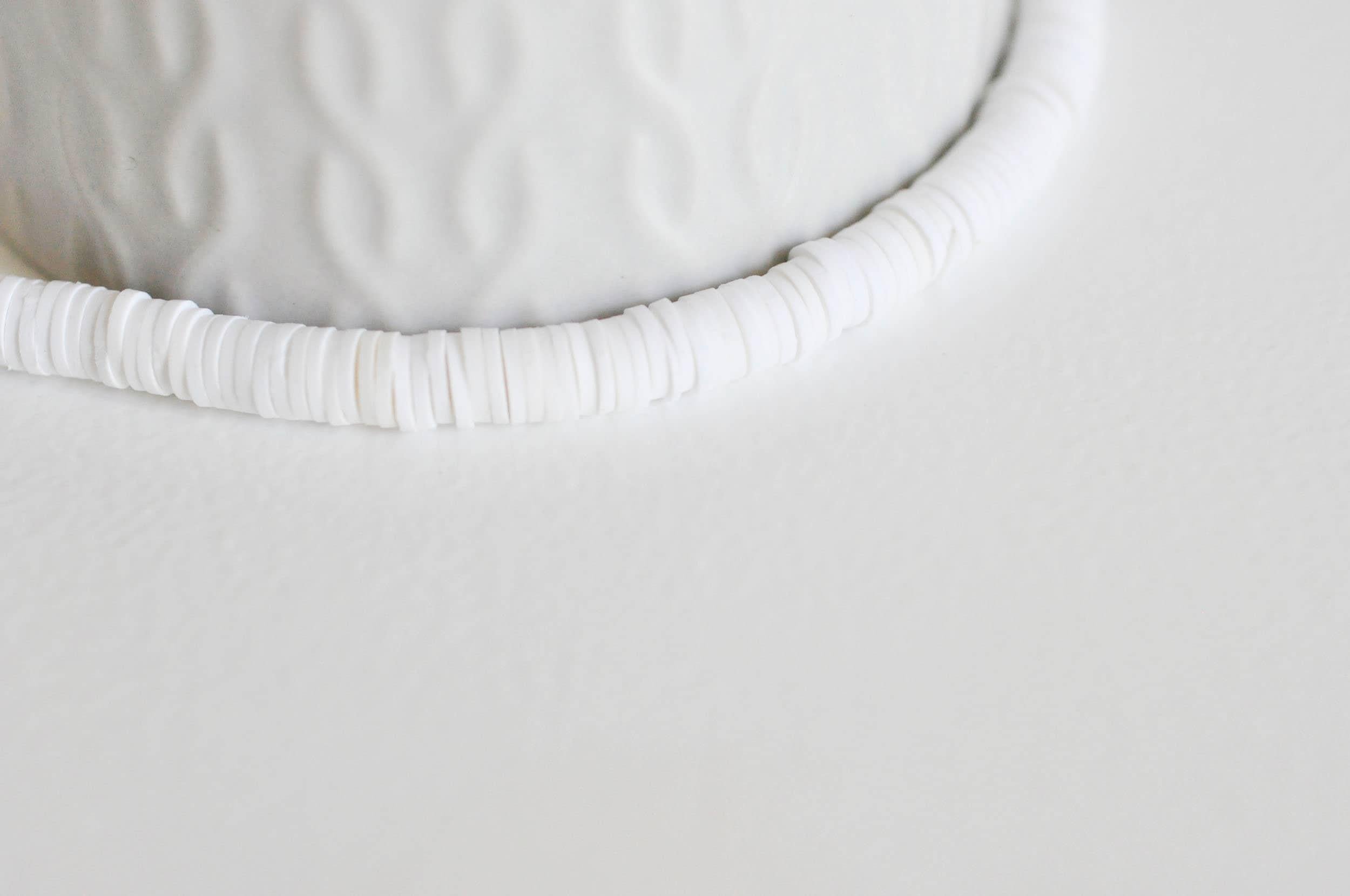 White vinyl beads, jewelry making, plastic beads, heishi beads, disc beads, creative supplies, 6mm, thread of 320 beads